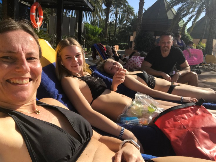 Bästa platserna… på eftermiddagen när solen hade kommit förbi palmen som skuggade platserna…🙄