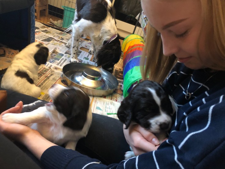 Vi tog extremt mycket bilder hos Annika och det har sin förklaring😊 nämligen dessa gulliga 4-veckor gamla Drentvalpar❤️