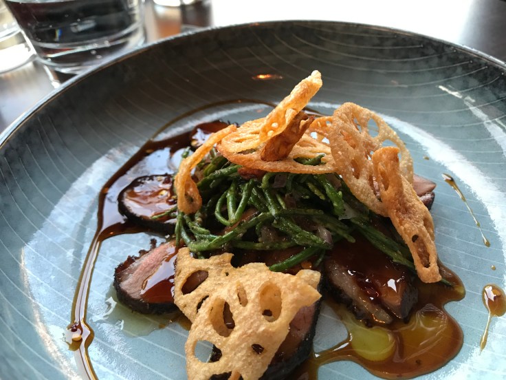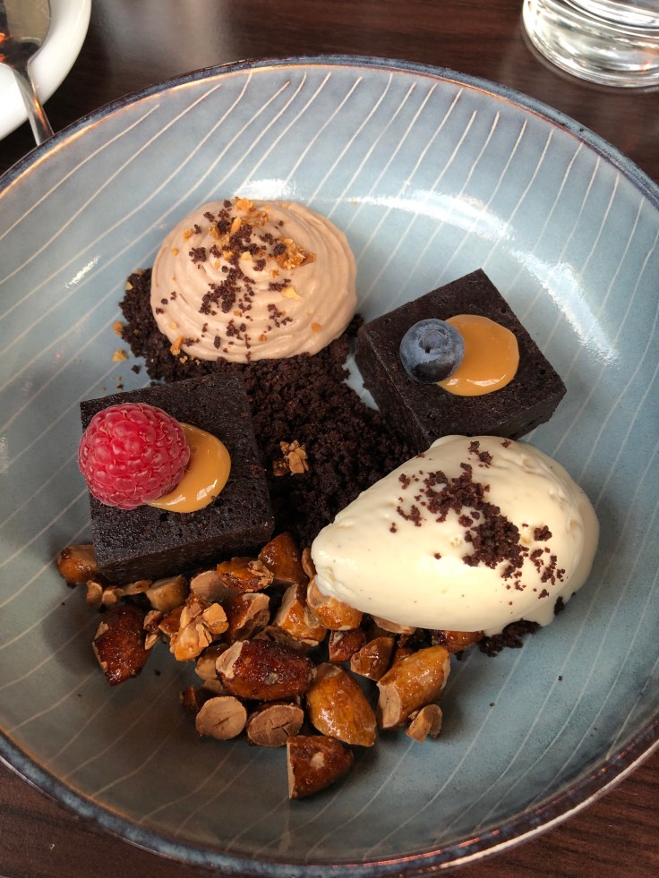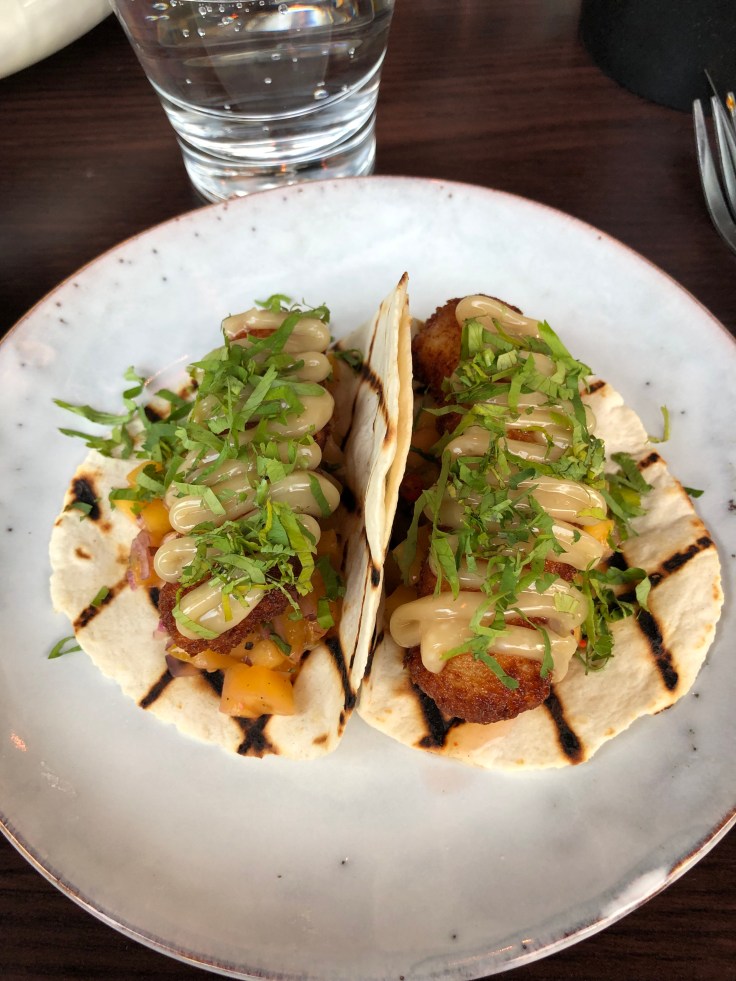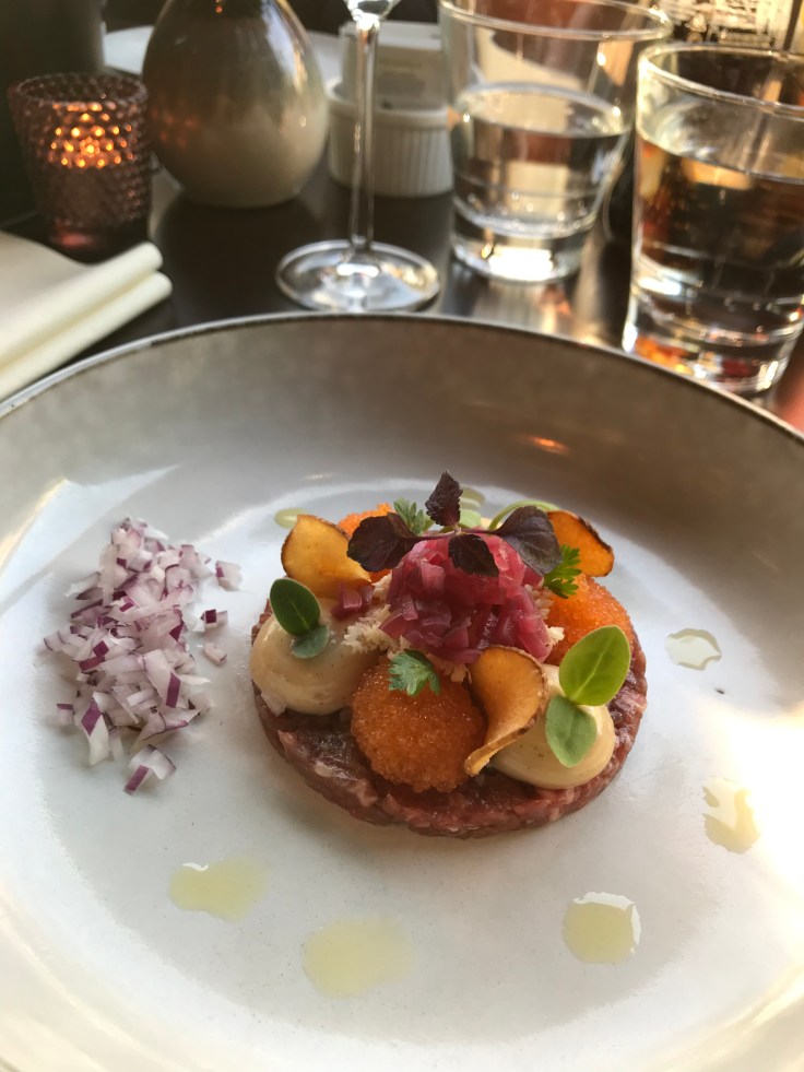 Bra och god mat som serverades som små rätter, typ tapas fast inte bara spanska rätter. Det här testade vi: