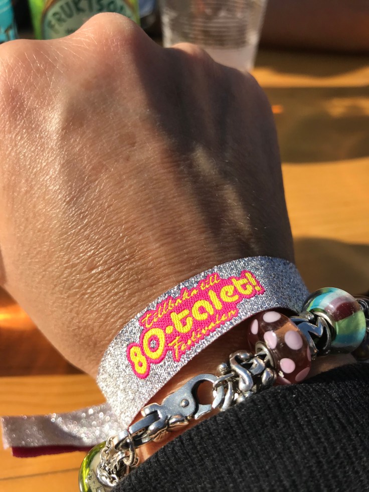 Efter att passerat biljettcheck fick vi såna här fina partyband!⭐️