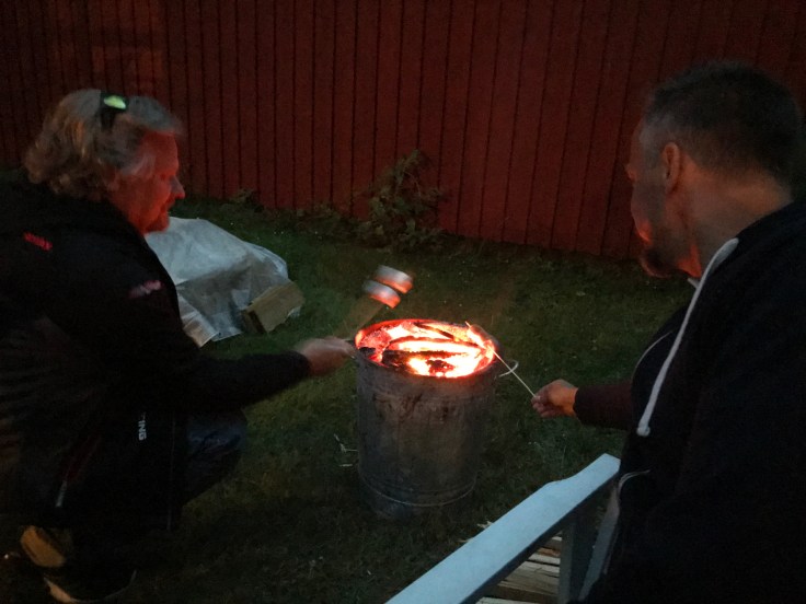 Efter maten gick vi upp till Tallis och satte igång en brasa i vår gamla soptunna. Vi spär ju på bilden av att vi lever som värsta Hillbillisarna här uppe, men det var det värt, det blev supermysigt😉