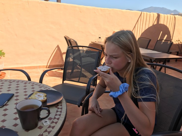 Då ska vi se hur det här med att bo i lägenhet funkar, ingen som städar och bäddar sängar, köpa och laga mat får vi göra själva men och andra sidan är det frukost när man behagar och ingen kö till Churros med Nutella😉 Den här första morgonen hade vi faktiskt lyxen att äta redan fixad frukost, åter igen hade Magnus jobbarkompis tänkt på oss och köpt lite bröd och smör, Philadelphia ost och marmelad, så gulligt och uppskattat🙏