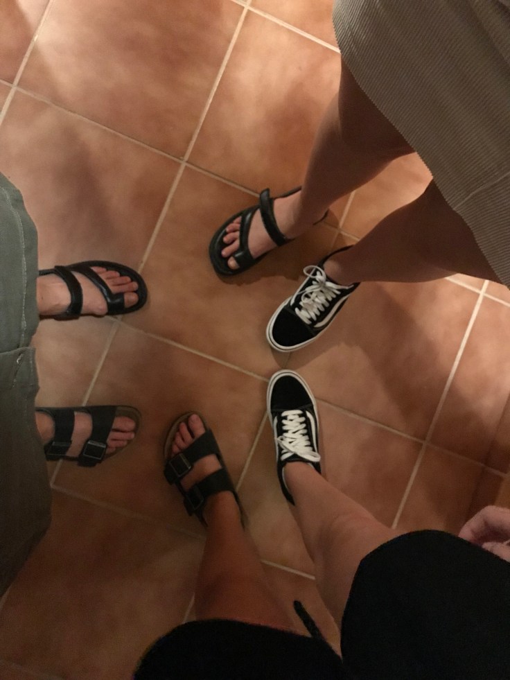 I ett försök att slippa skavsår hade vi tjejer till slut olika skor på olika fötter allihopa😂🤣