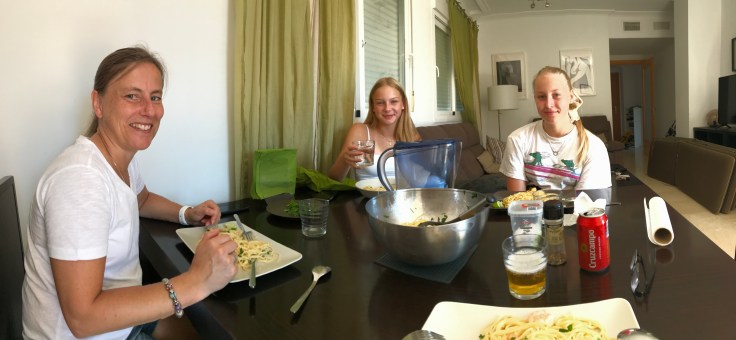 Efter frukost gav vi oss av till Mercadona, dvs mataffären för att handla på oss lite mat. Det var faktiskt jättekul att gå runt där och titta på allt. Tove hittade ett paket med bläckfisk, det köpte vi inte den här gången🙂