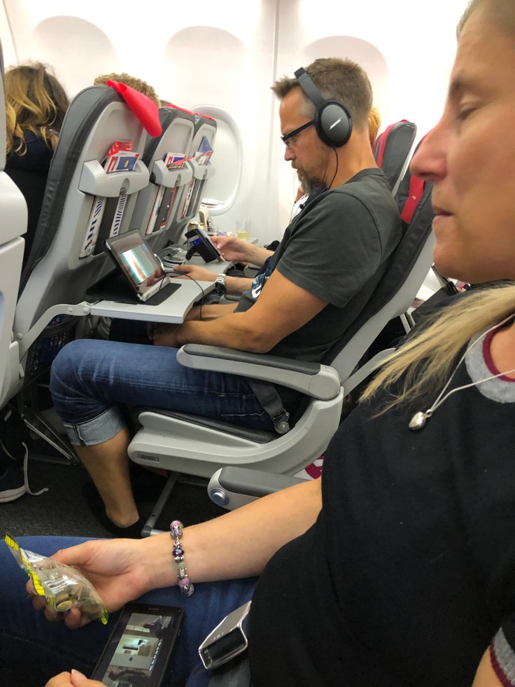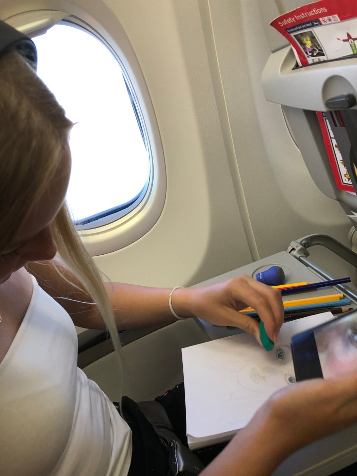Lina var så inne i sitt målande på planet att hon nästan inte märkte de dryga 4 timmarnas flygresa.