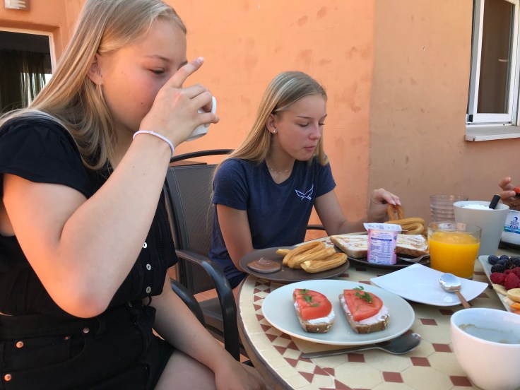 Idag har vi sovit ut och ätit en riktig lyxfrukost på terassen!