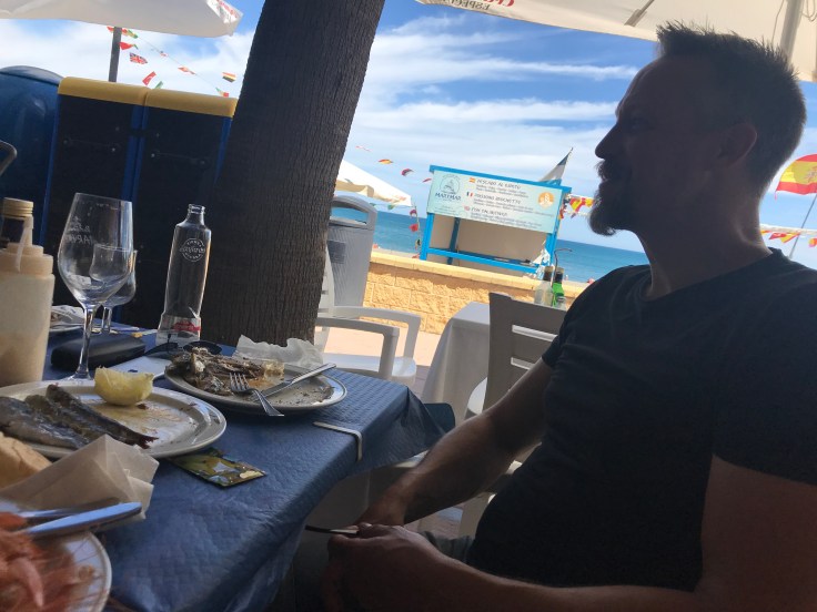 Efter frukosten åkte vi och stödhandlade lite mat, den här gången tänkte vi testa Lidl. Det var kaos på parkeringen när vi kom dit, hur mycket folk som helst! Alla i hela området måste vara här idag! Även inne på affären är det nästan omöjligt att ta sig fram med vagn. Efter att vi hade lastat i typ lite mjölk, vatten och duschtvål gav vi upp och gick och betalade (en liten observation och fråga från min sida; hur fungerar det egentligen på Lidl om man ska köpa mycket och lägger upp massor av varor på bandet, kassörskan blippar varan och… det är här jag inte förstår… lägger varan på typ en liten kant, det finns liksom inget band eller uppsamlingsyta ALLS, nada, hur tänker dom där?🤔). Hur som helst åkte vi vidare till Mercadona som vi alla gillade att handla på häromdagen. Det var visserligen fullt med folk där med, men till slut kom vi ut och då hade vi i alla fall en plan för middag👏😊 Lunchen, ja den har Magnus en plan för redan…