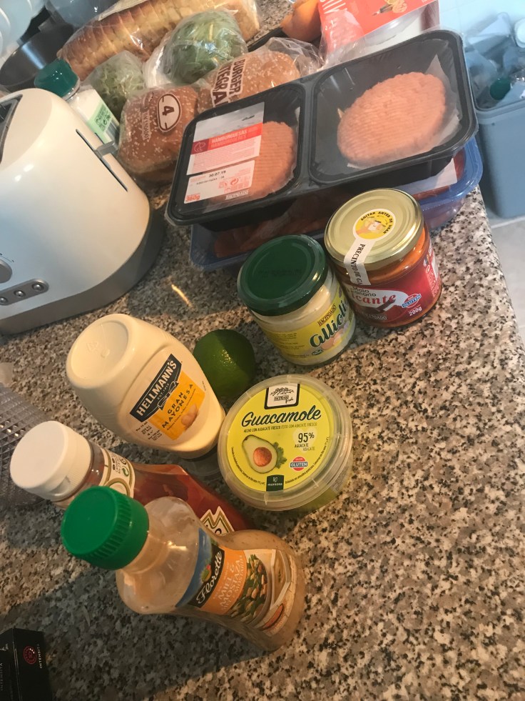 Sen middag in the making, laxburgare, kronärtskockor, räkor, patatas bravas, och diverse röror, tror vi blir mätta idag också😉