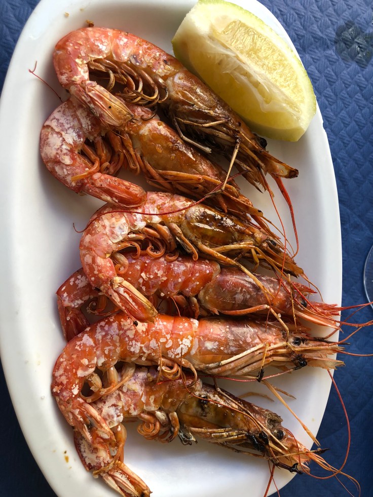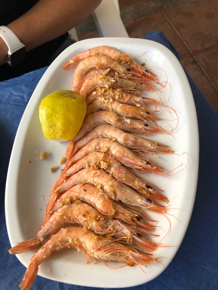Lina tog heta räkor i vitlök.