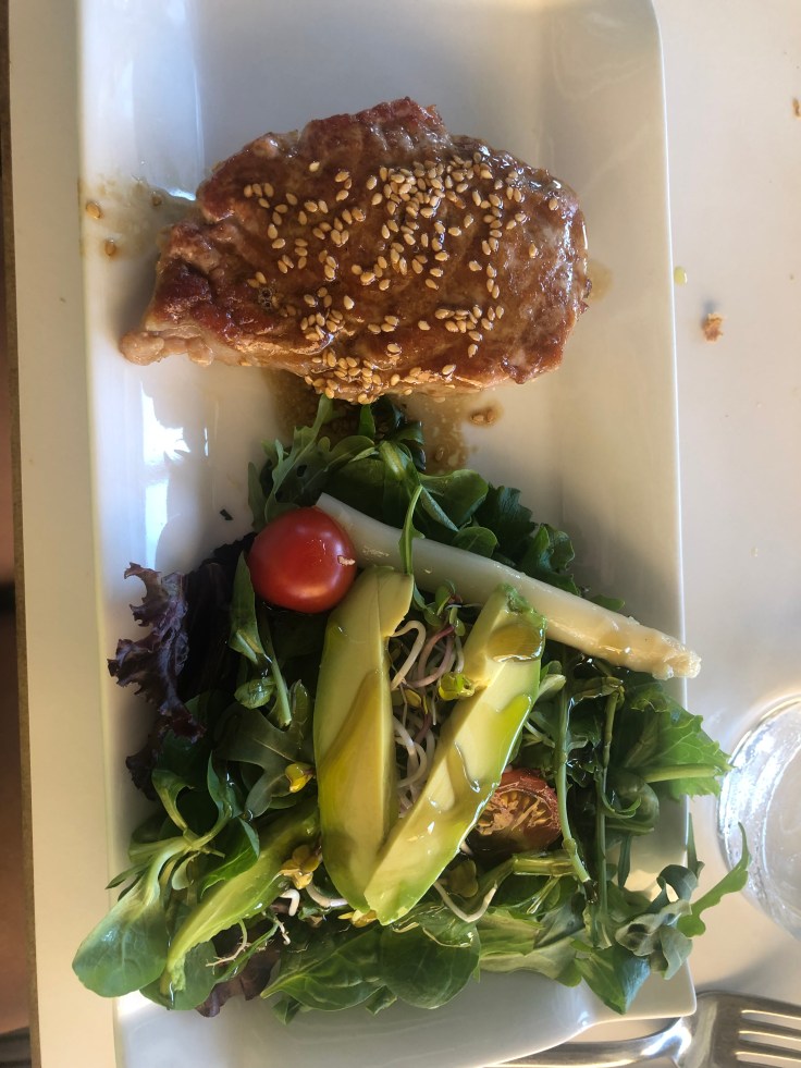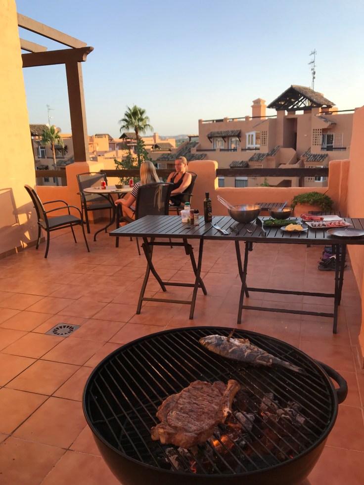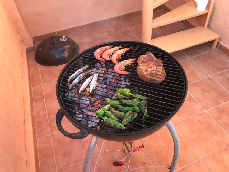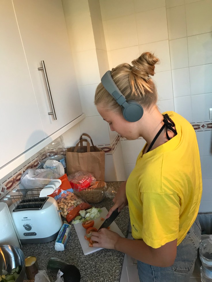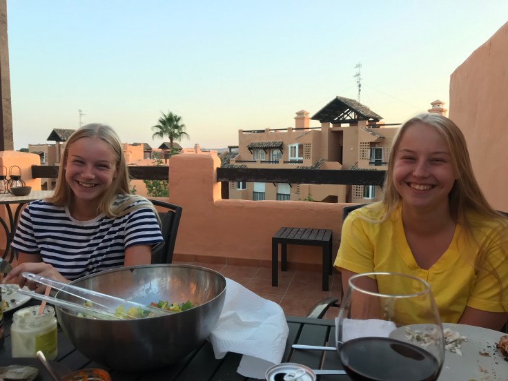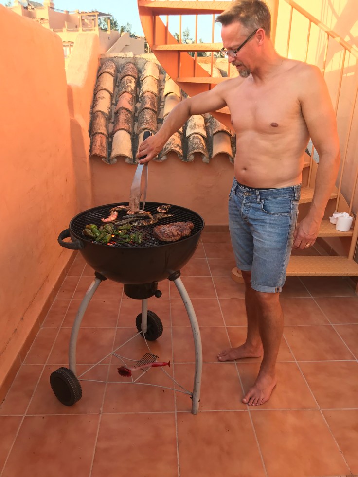 Idag är det ganska vindstilla, så på vägen hem stannade vi och köpte lite mat som vi kan grilla på terassen ikväll. Tove fixade sallad.