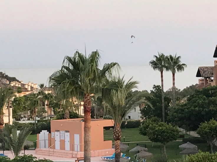Utsikt från terassen och så verkar det vara glidflygning nere på stranden ikväll.