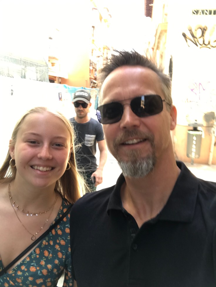 Sen var det dax för lite shopping! Magnus kommentar var att han och Tove har lite olika shoppingstilar ”Jag går liksom in, spanar runt och går vidare. Tove går in och tittar på varenda pryl! Ganska snabbt fick jag klart för mig hur det fungerar när Tove fräste ”Vad gör du, jag har ju inte BÖRJAT titta här än!!!” Sen förstod jag också att när man kommer ut från en affär så går man inte vidare på gatan, för när jag vände mig om så var Tove borta, då hade hon bara rundat hörnet och gått in i nästa butik! Vid ett tillfälle när vi kom ut tänkte jag Puh vad skönt, här fanns det ingen affär, men då pep Tove över gatan och gick in i den affären istället!😩 Men vi kom iallafall fram till att jag inte behövde sitta och vänta utanför provhytten och det tyckte jag var skönt😁👍” Hahaha, jo så kan det bli en semesterdag när man är tonårspappa😂😂😂