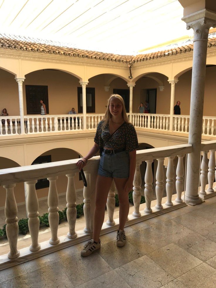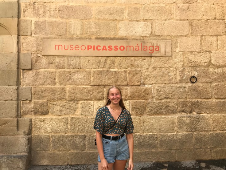 Tove utanför Picasso-museet. Tydligen rätt mycket folk som passerade så Tove var inte helt bekväm med pappas poseringsönskan😊