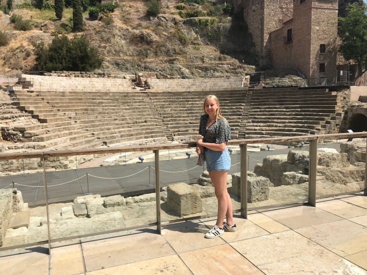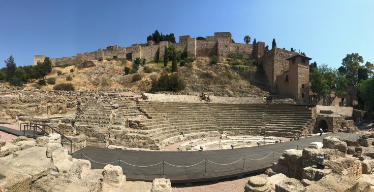 På vägen tillbaka till bilen gick dom förbi detta, det är det äldsta monumentet i Málaga stad och är en av få romerska ruiner som finns kvar i Andalusien. Den hittades efter ett byggarbete 1951. Denna 2000 år gamla amfiteater har stått emot tidens tand och olika krig genom åren. Den har fått nytt liv och här arrangeras nu friluftsföreställningar på somrarna.
