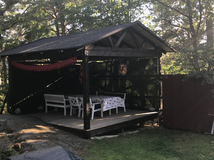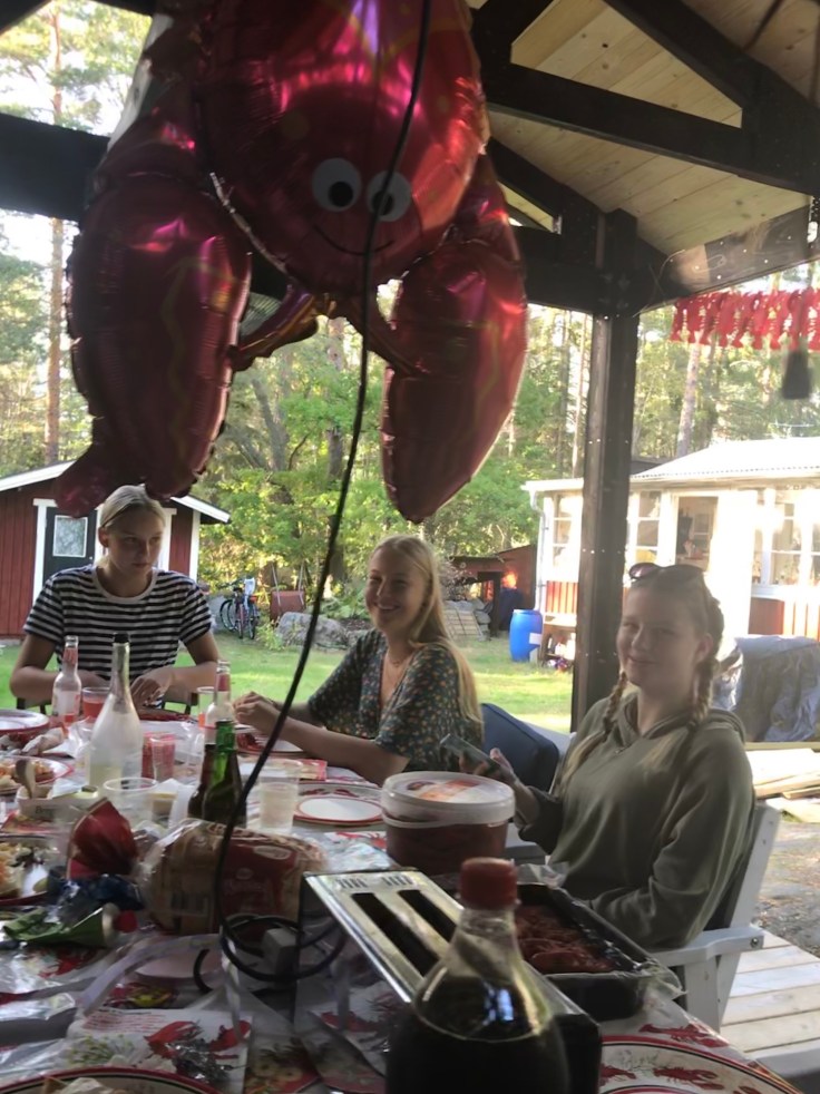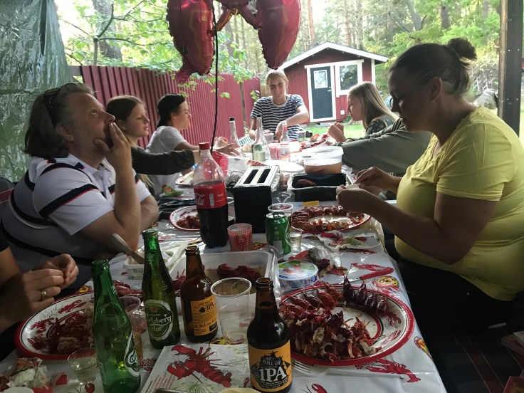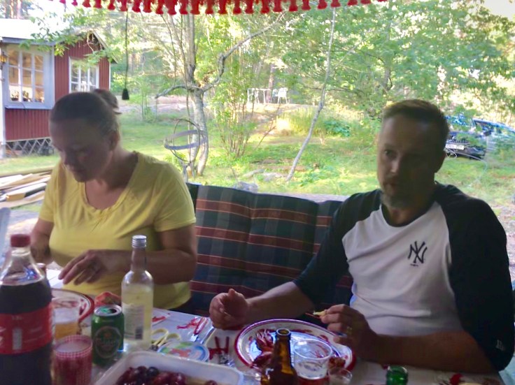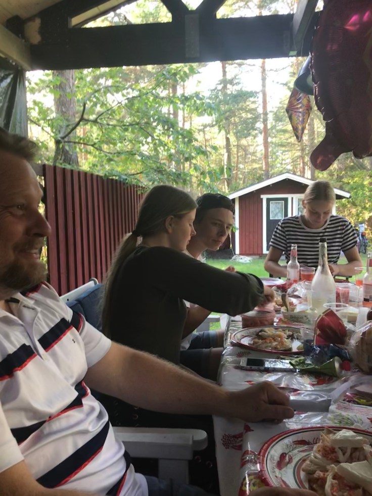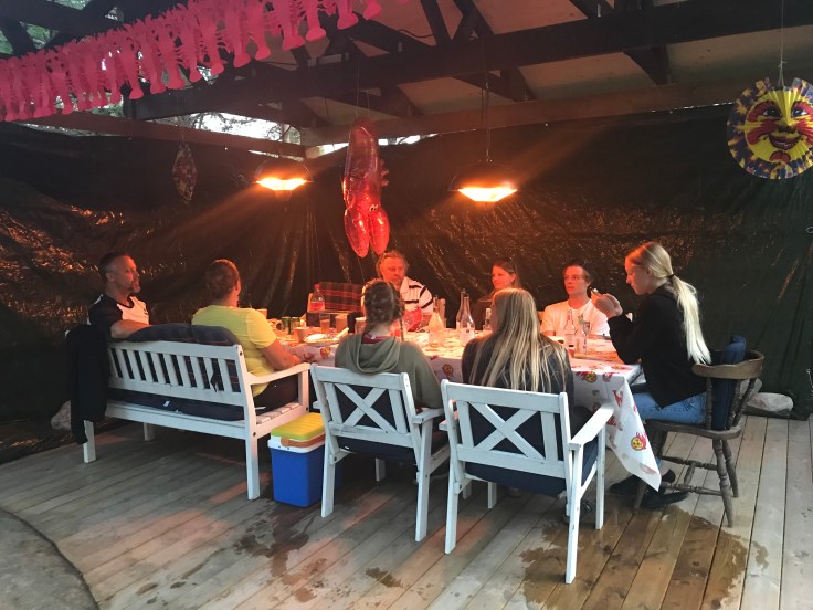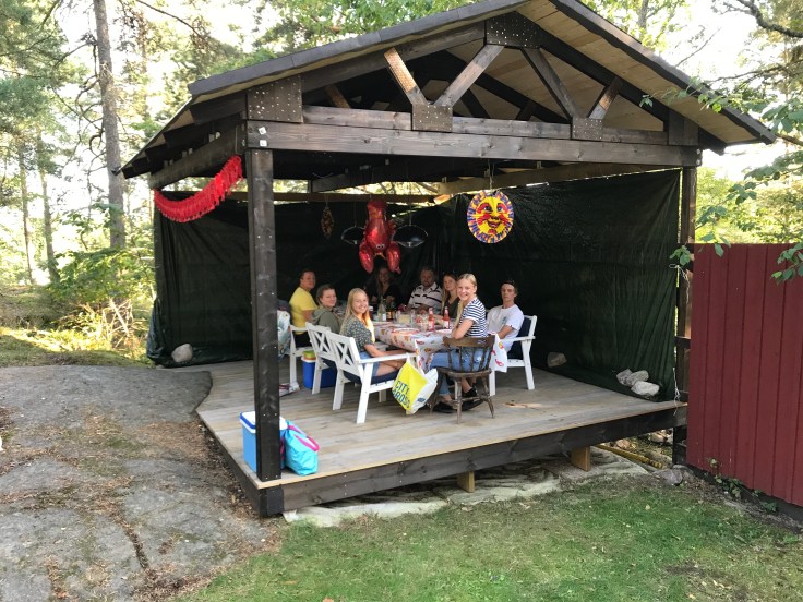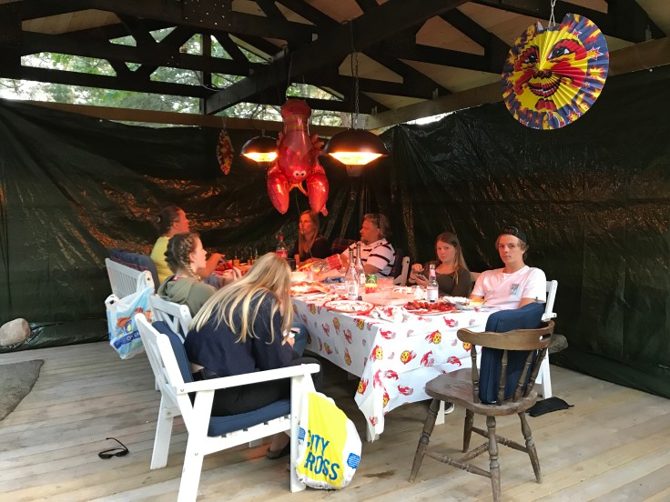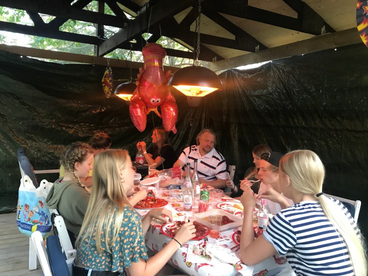 Igår hade vi årets traditionella kräftskiva med Broströms på landet och i år blev det till och med under tak på Tallis😊