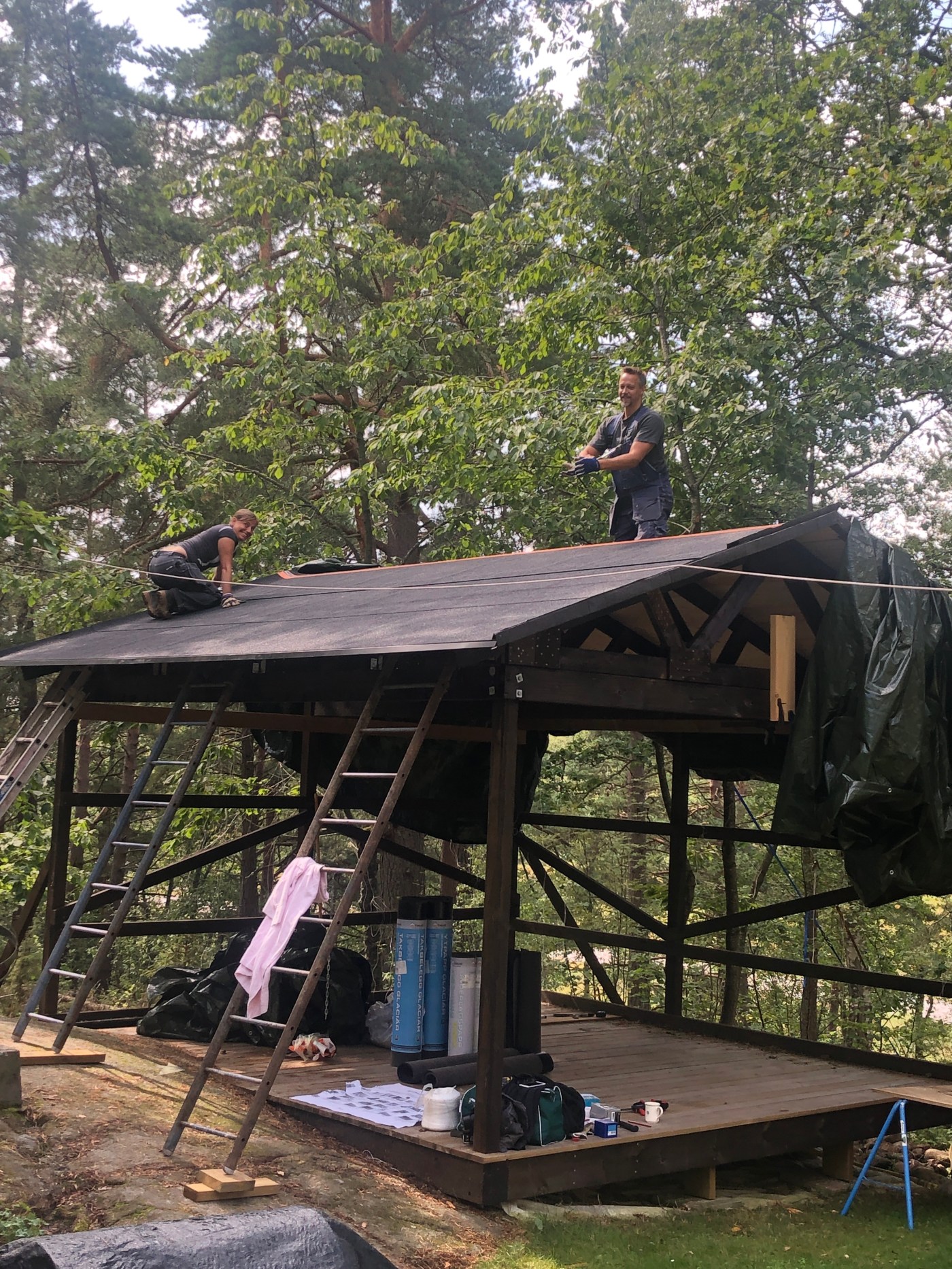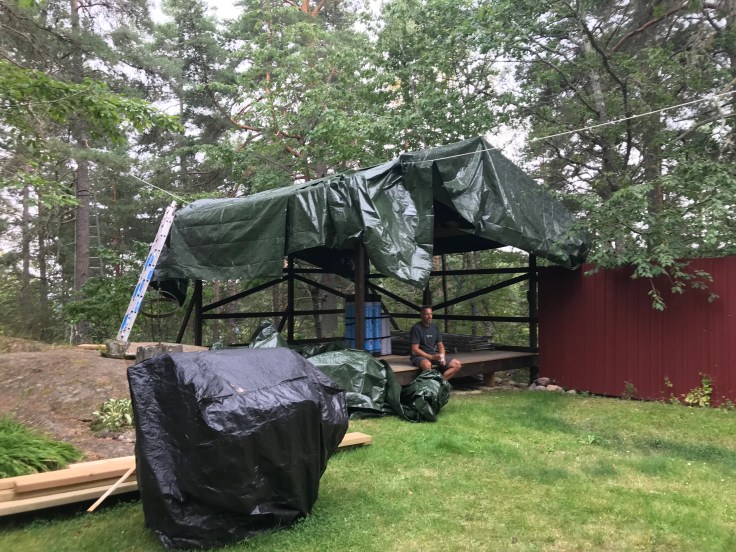 F-n vad skönt att vi hann få upp presenningen!