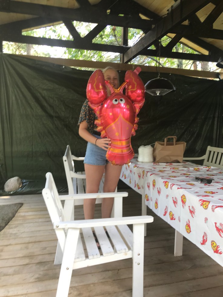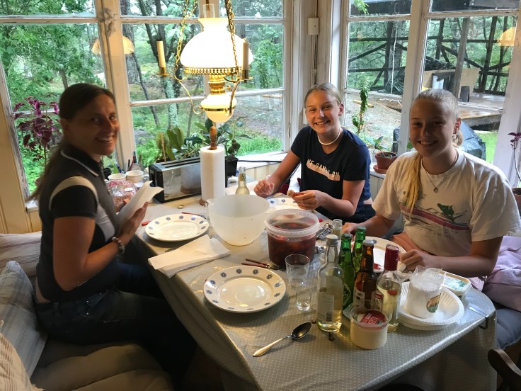 På kvällen kunde vi inte låta bli att äta lite kräftor. Egentligen var tanken att vi skulle ha ätit med Broströms, men dom har blivit sjuka. Vätternkräftor blev det i alla fall, väldigt goda!