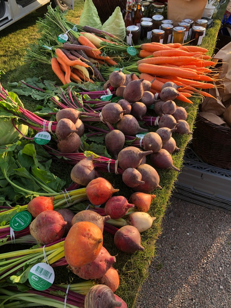 Närodlade grönsaker, närproducerade produkter och ett fik.