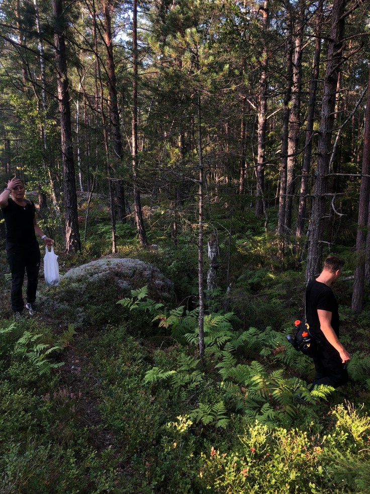 Jag klagade ju lite på svamptillgången i Linköping, så när vi bestämde oss för att gå på en promenad hemma förra helgen så fick Magnus för sig att vi skulle se hur det såg ut här. Tove och jag undrade lite vad han höll på med när han plötsligt vek av och började klättra upp på ett berg? ”Här tror jag blir bra!” hörde vi bara när han pep iväg… bra för vad? ”Här tror jag är ett bra ställe att plocka svamp!” Jaha ok! Då är det bara att följa efter då! Efter mig hörde jag Tove mumla ”Asså, jag vet inte om jag tycker det var en så bra idé det här…?”😊