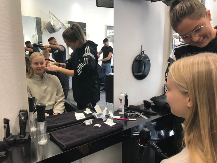Vi gav upp och gick till vår frisör som sa ”Javisst, inga problem!” Det tog 5 min!