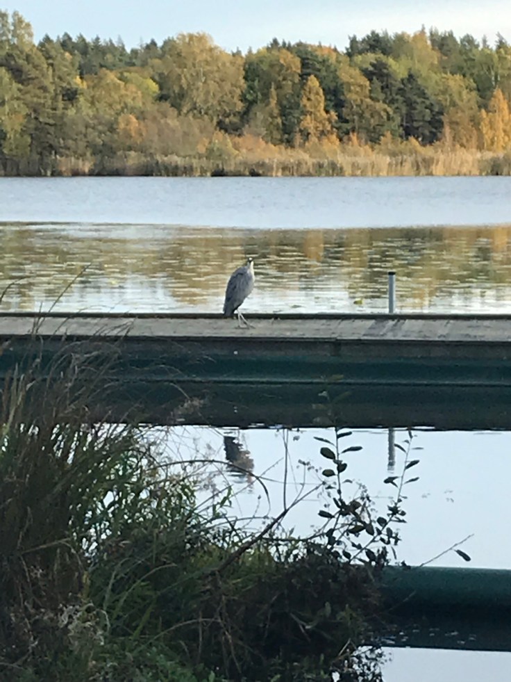 På vägen hem kom en häger flygande och satte sig på bryggan bredvid oss. Riktigt skön promenad i solen!