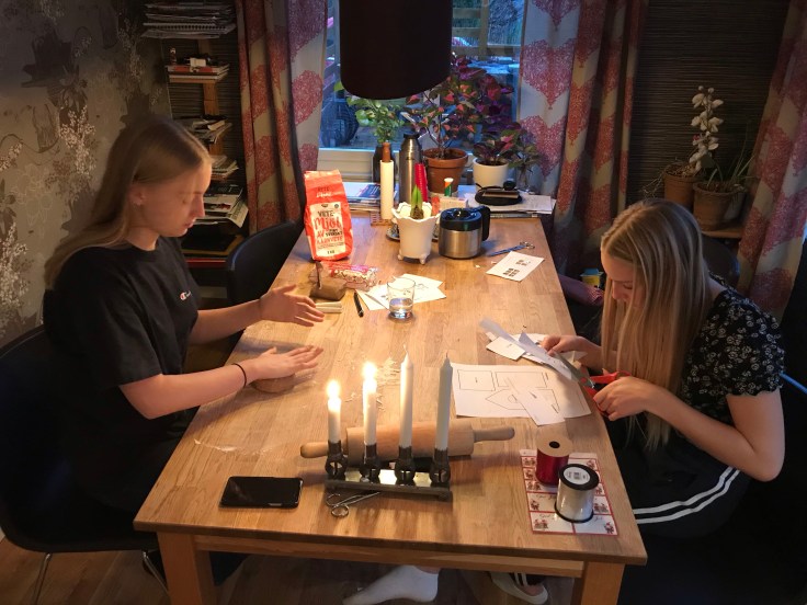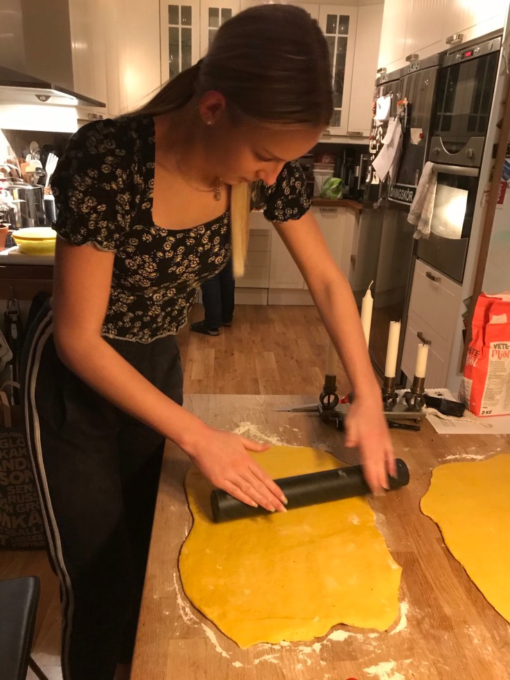 Sen bakade jag och Tove ut pepparkaksdelarna medan…