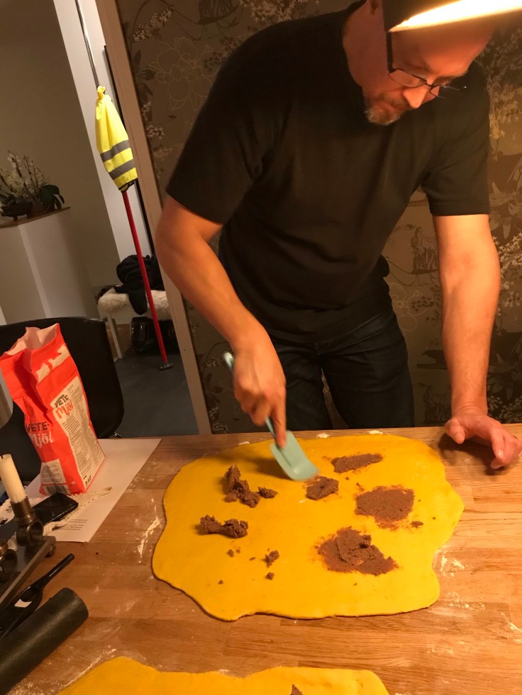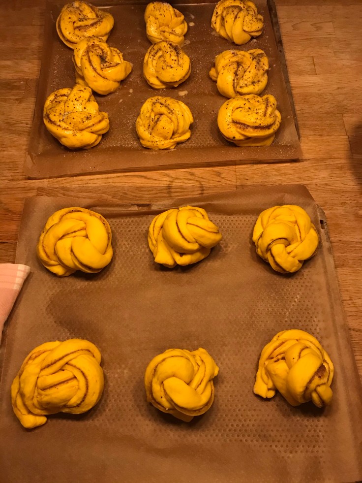 När dom är snurrade och jästa så ska dom strösslas med kardemumma och socker.