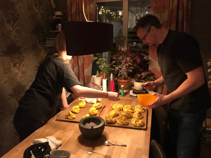 Lina och Magnus bakade ut lussebullarna.
