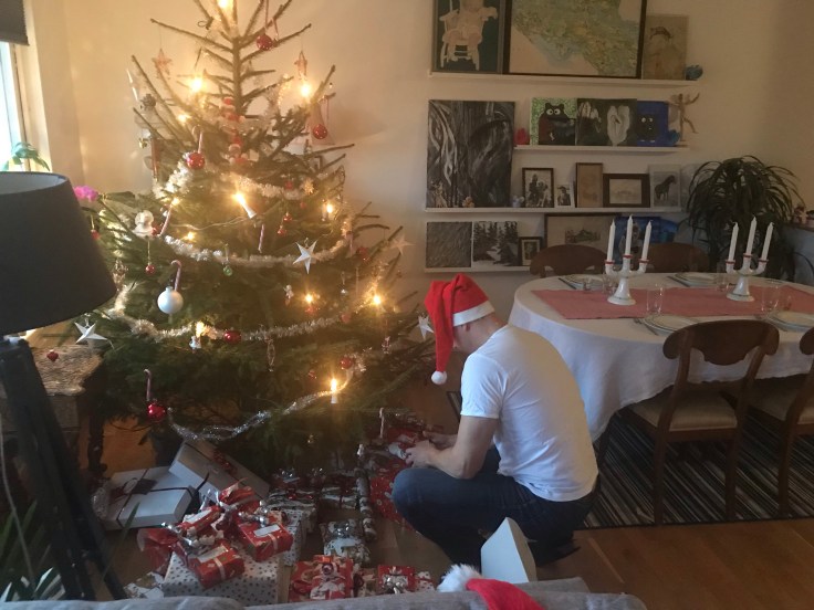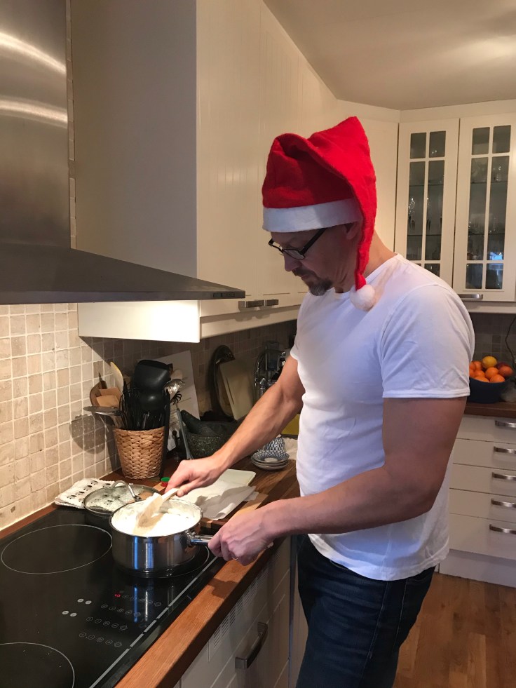 På julaftons morgon hittade vi självaste tomten i köket i färd med att laga tomtegröt till frukost. Ingen dålig början på dagen med andra ord😊