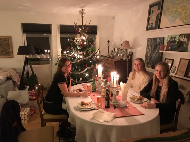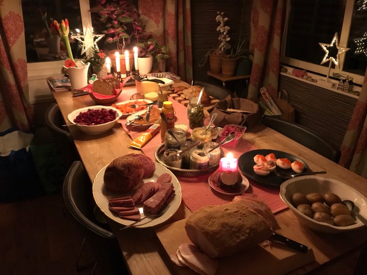 Efter Kalle Anka dukade vi upp julbordet. Alltså, vi har ju mat för ett helt kompani nu när Broströmmarna inte är här. Det är bara att hugga in och äta så mycket vi orkar!
