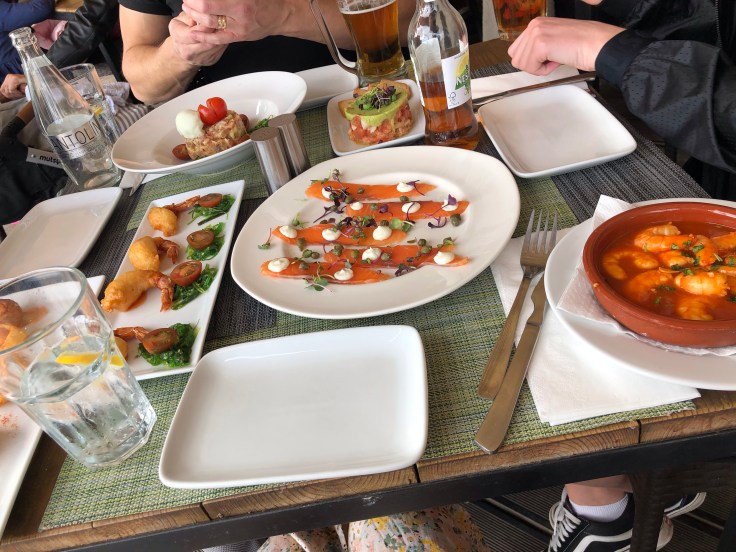 Den var riktigt bra. Vi åt ett gäng bra tapas-rätter och var supernöjda…med maten…värre var det med vädret! Det mulnade nämligen på och då kändes kortbyxor inte så hett längre🥶, det blev riktigt kyligt faktiskt…ja, allt är ju relativt men typ 14-16 grader och skugga är ju kallt med kortbyxor, dock bättre än -6 och sommarjacka som vi hade igår!☝️