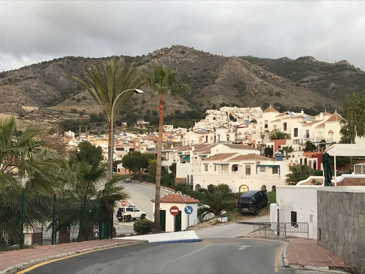 Nästan framme hos oss, ganska fint med alla vita hus och berget i bakgrunden!