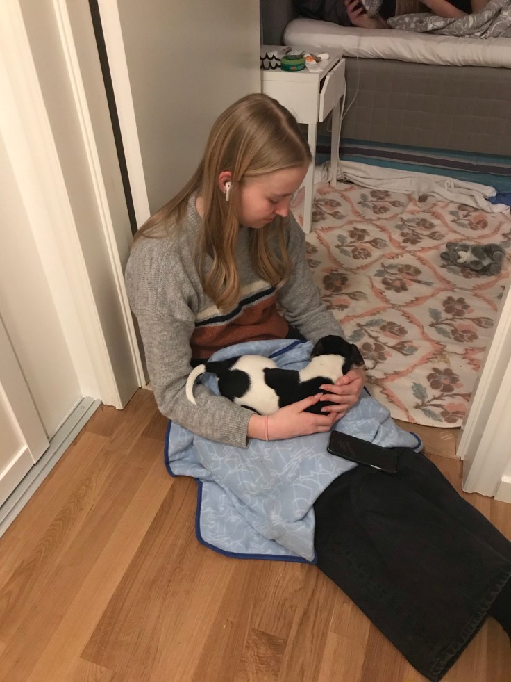 Tro mig, vi har stött och blött för- och nackdelar, fram- och tillbaka, fram- och tillbaka. Klarar vi att ta hand om en hund. Kan vi klara att pussla ihop det sĂ„ vi kan jobba hemifrĂ„n under framför allt valperioden? Ăr vi alla beredda pĂ„ att det Ă€r ett stort ansvar dĂ€r vi behöver anpassa och Ă€ndra Ă€ven vĂ„r livsstil. Hundens bĂ€sta mĂ„ste gĂ„ först! Vi mĂ„ste kanske avstĂ„ frĂ„n att Ă„ka pĂ„ resor pĂ„ samma sĂ€tt som vi gjort. Kanske avstĂ„ roliga aktiviteter och istĂ€llet vara hemma med hunden. GĂ„ pĂ„ promenader i ur och skur och vara aktiva och se till att stimulera hunden. OCH att se till att den Ă€r vĂ€luppfostrad đ€šâïž