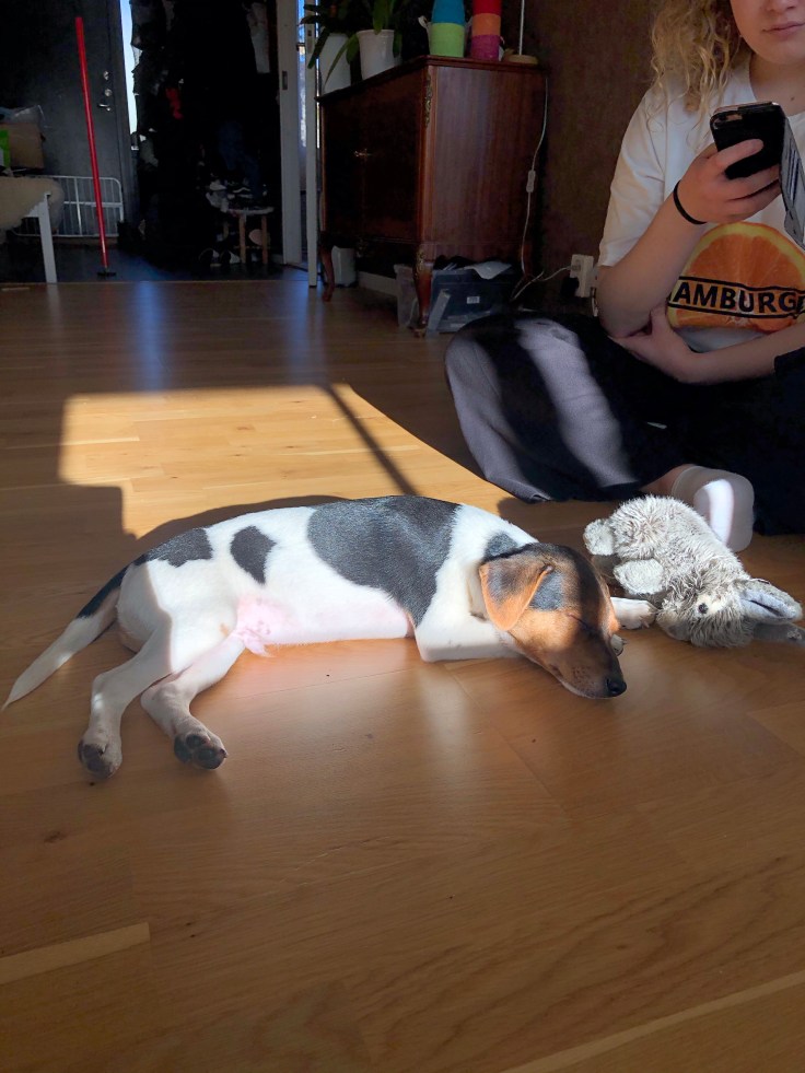 Hugo gillar verkligen solen, minsta strimma som kommer in och han ligger där och njuter!🥰