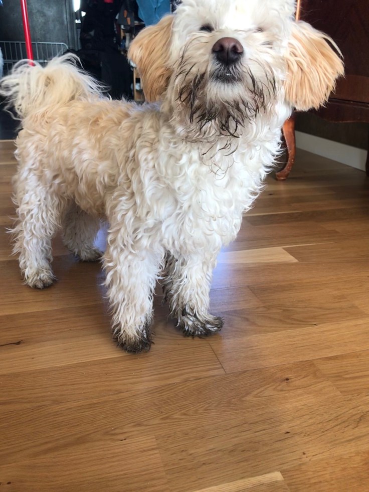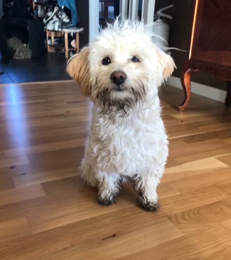 När man har mycket päls och tycker det är skitkul att gräva så kan man se ut så här när man kommer in🙂