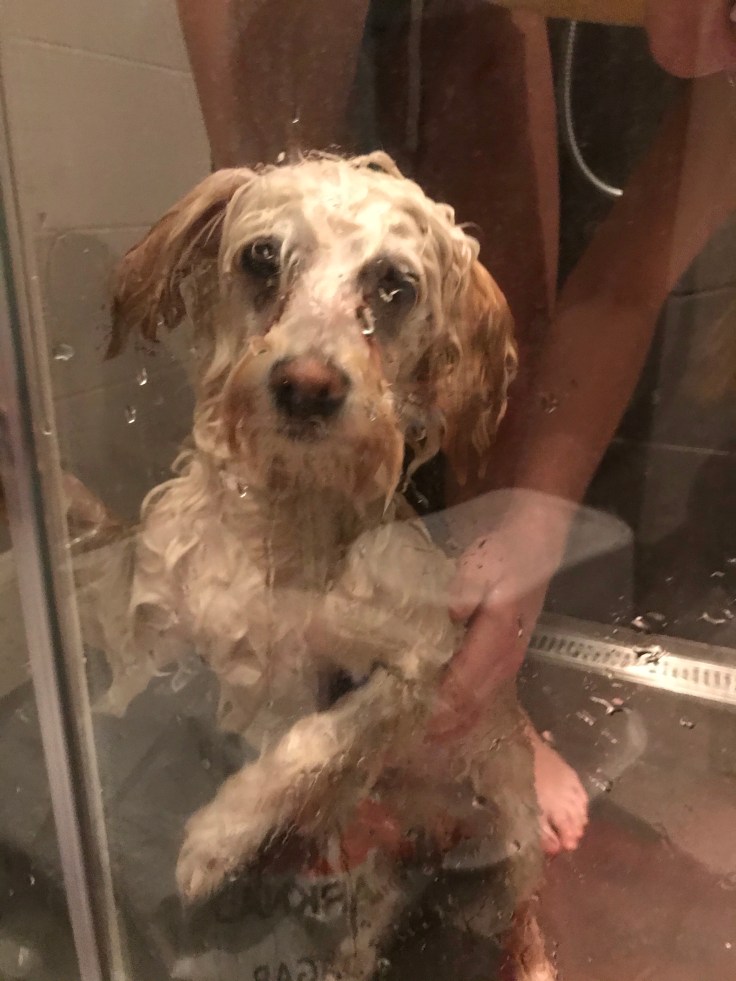 Men när matte och husse snart ska komma och hämta kan man ju inte se ut så där! Inte så uppskattat med duschen men han var jätteduktig 🙌👏