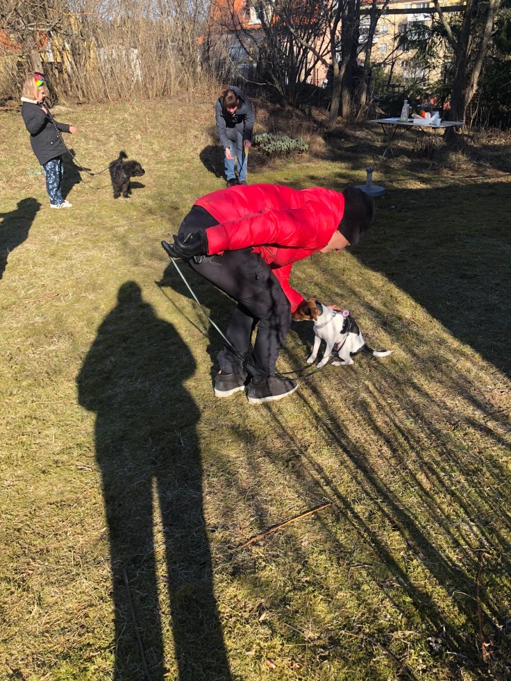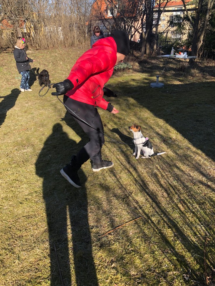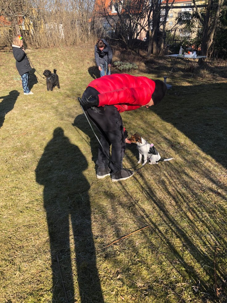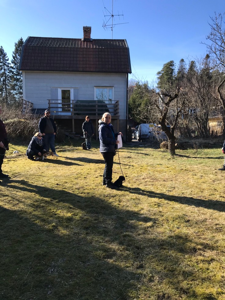 I söndags hade vi andra tillfället i vår valpkurs. Denna gång var det ett gäng andra valp/unghundsägare inbjudna för gemensam träning i hur man hanterar hundmöten. Vi hade fått instruktion innan att INTE låta hundarna hälsa på varandra när vi kom. Det var den första övningen. Vi skulle låta hundarna se varandra på avstånd utan att behöva engagera sig. Målet är att de ska känna sig trygga och kunna slappna av. Sen fortsatte vi med fler övningar och först på slutet fick hundarna chans att träffa varandra i hundgården utan koppel. Hugo var så duktig på alla övningarna! Vi var så stolta hela familjen 🥰