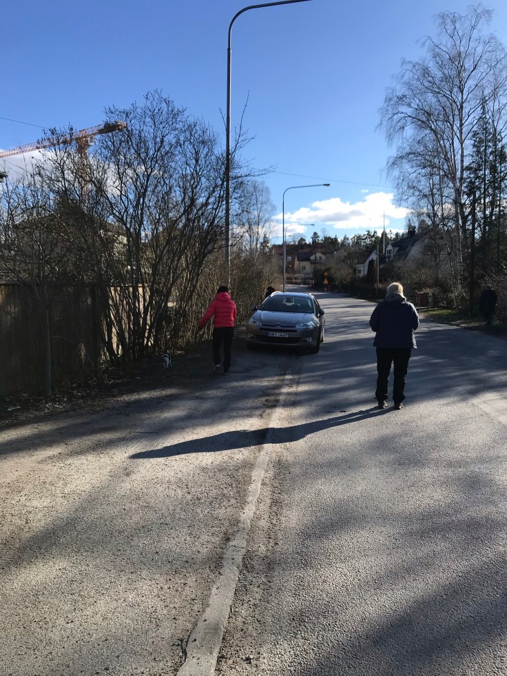 Hundmötesträning på gatan. Hugo var coollugn och passade på att sniffa runt och revirmarkera lite på den här nya gatan☺️