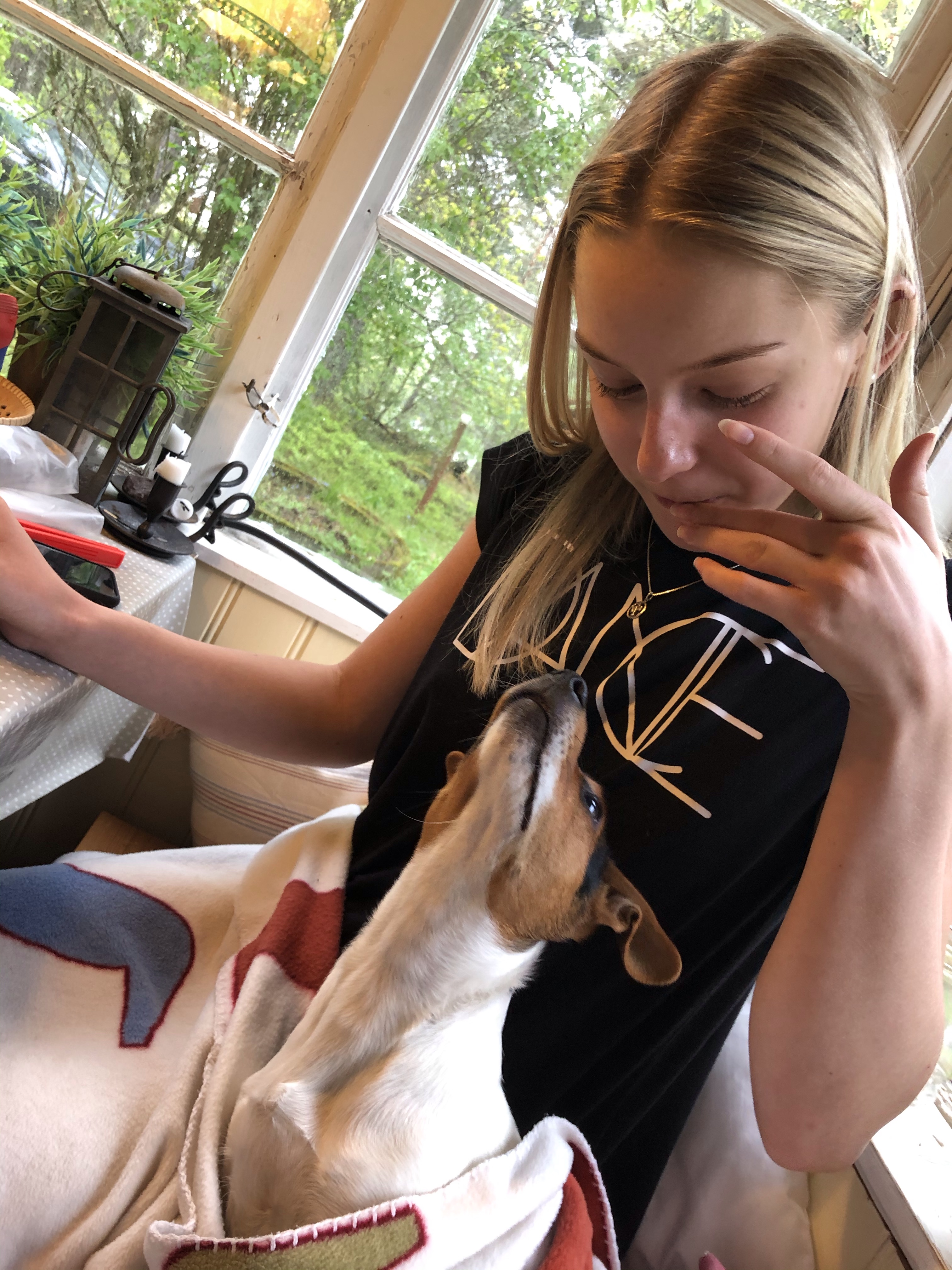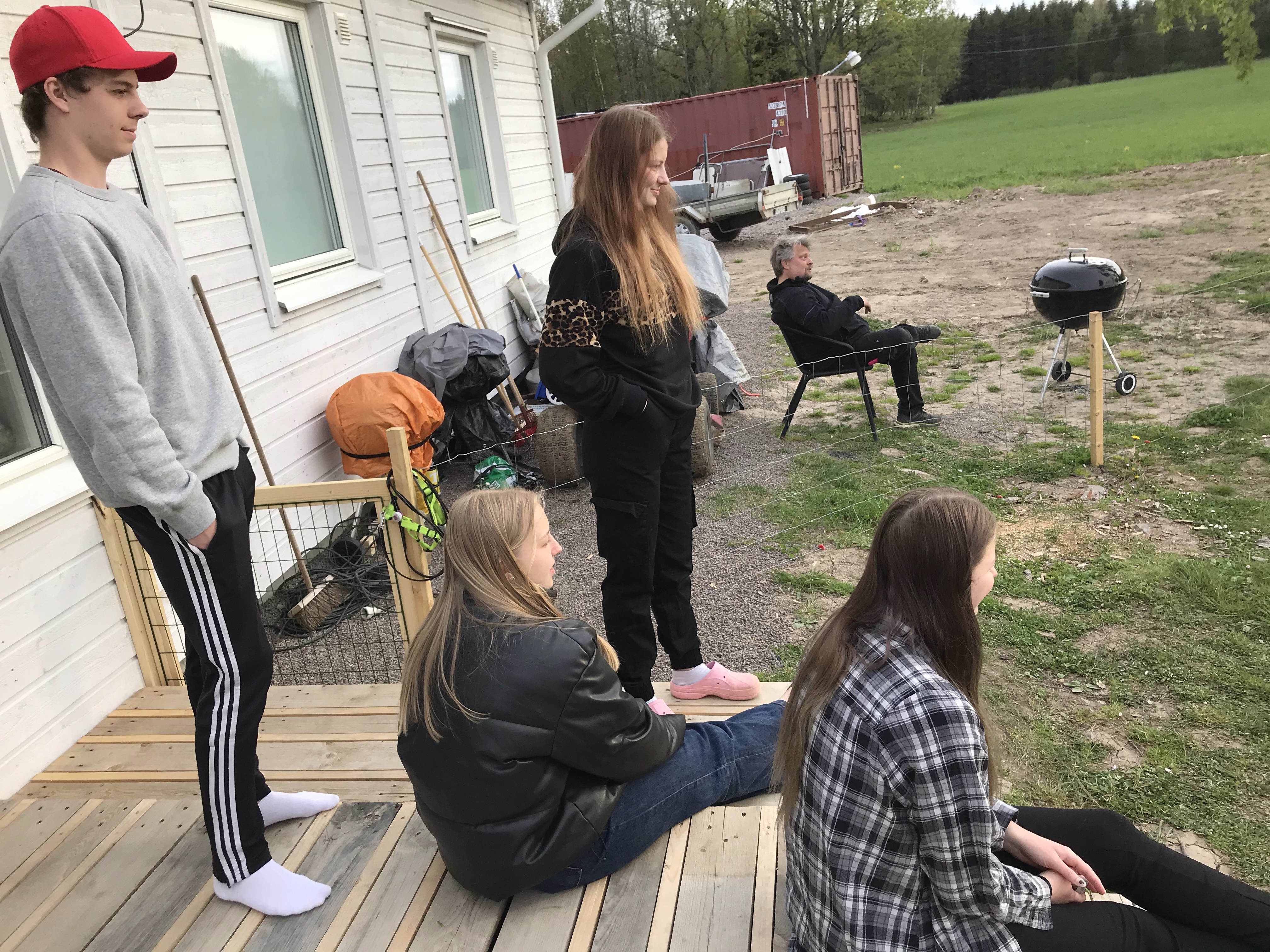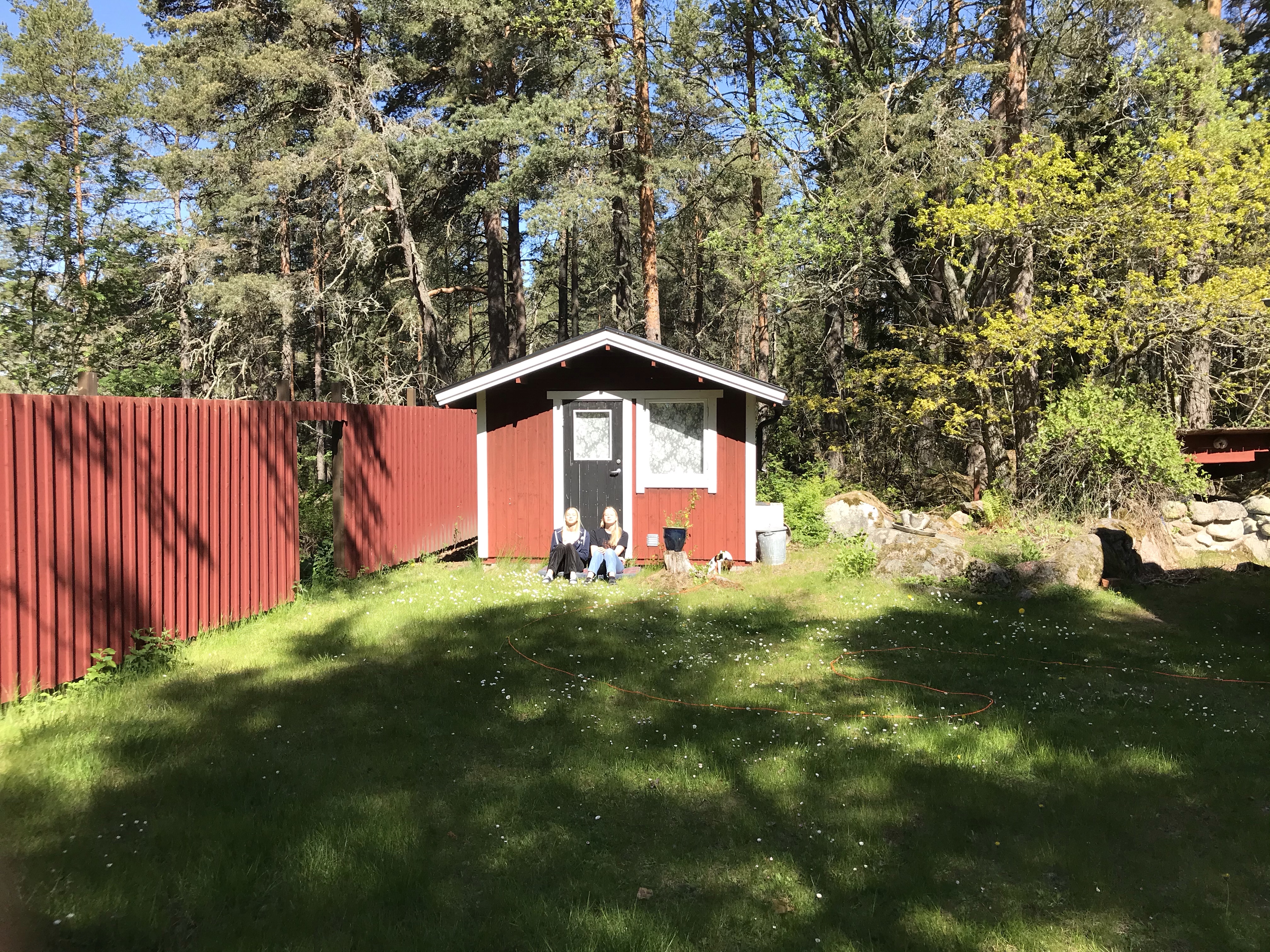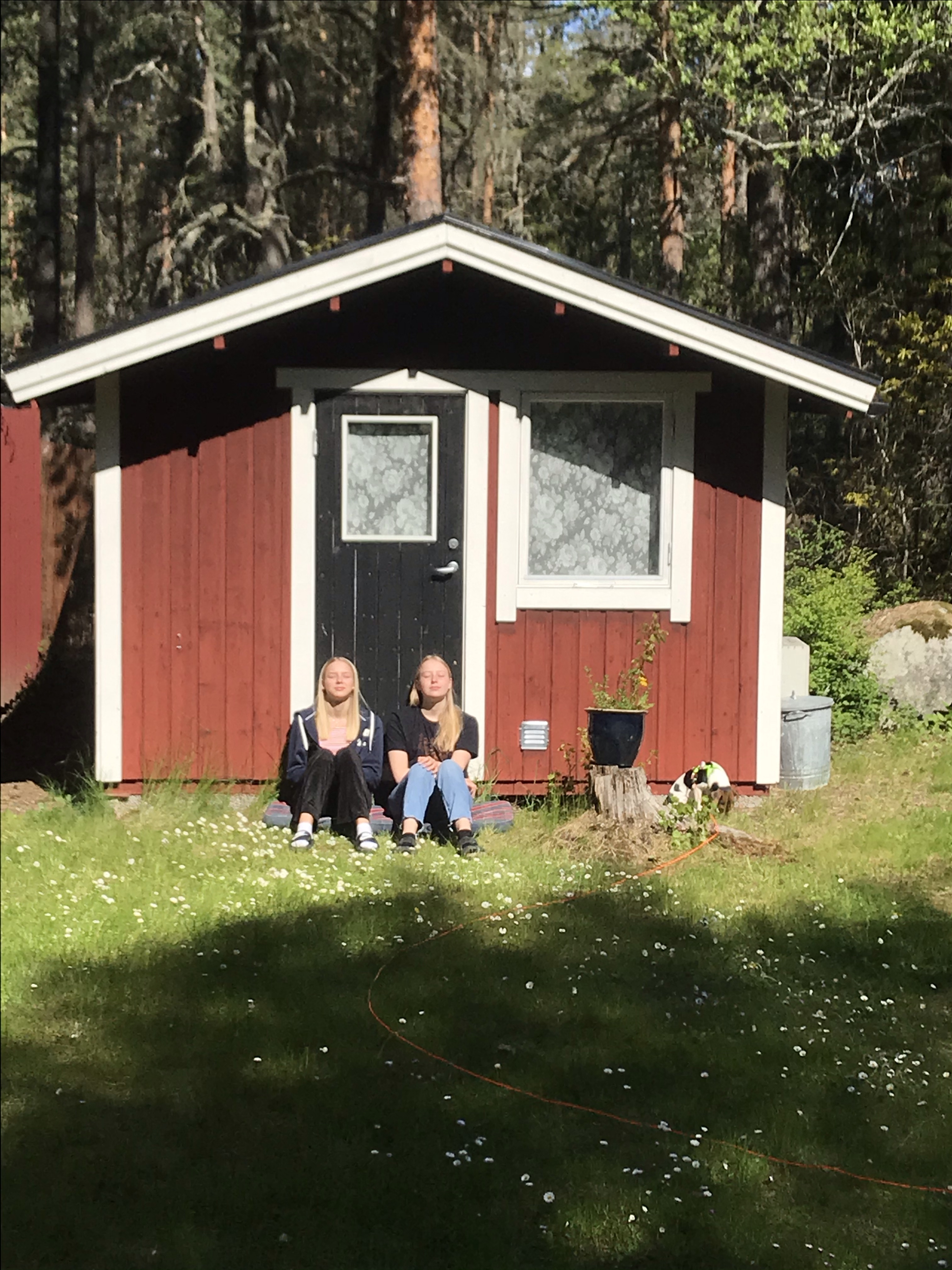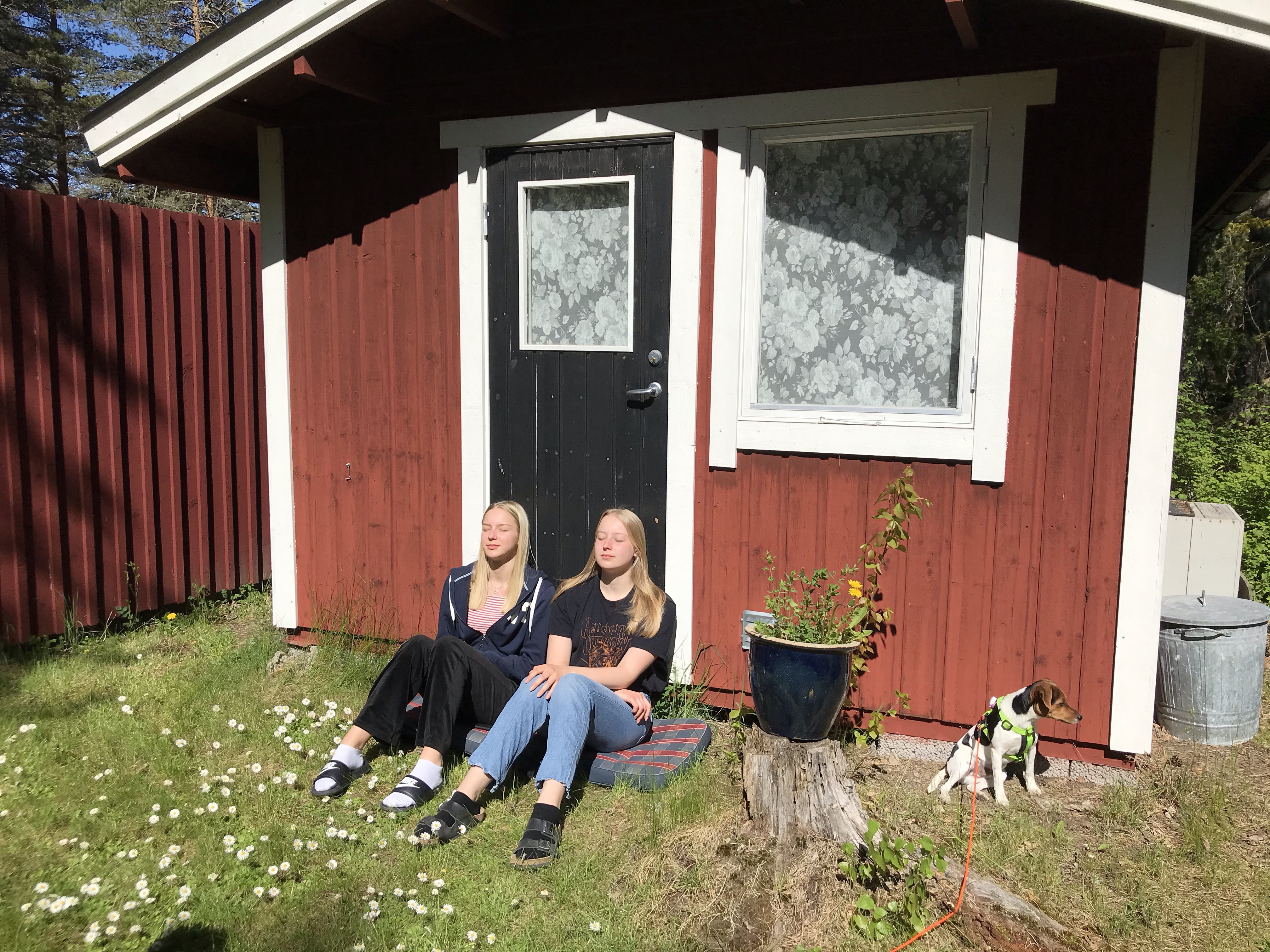 Torsdag och vi vaknade upp till sommarväder! Hugo och tjejerna satt och njöt utanför friggan i solen!