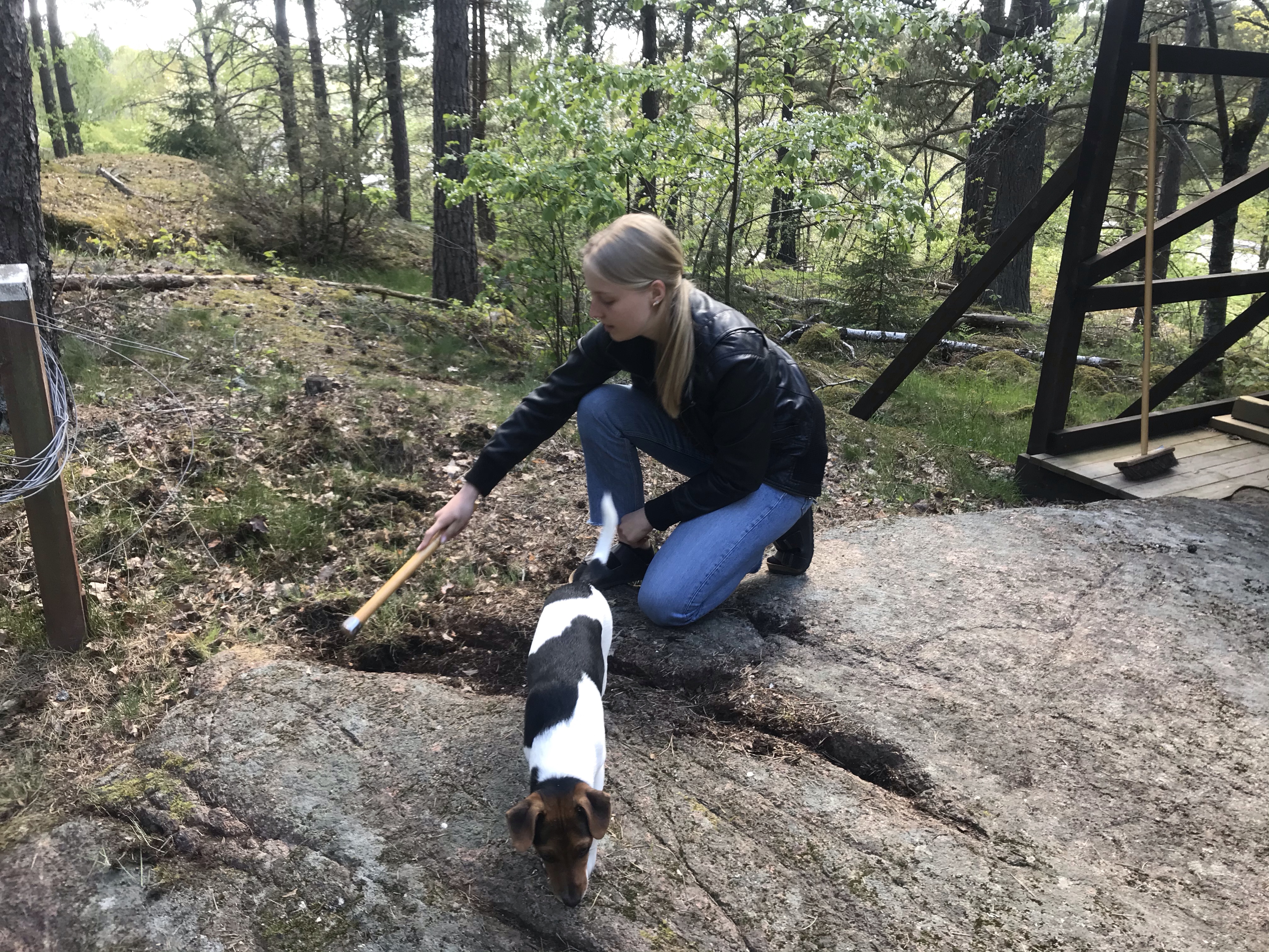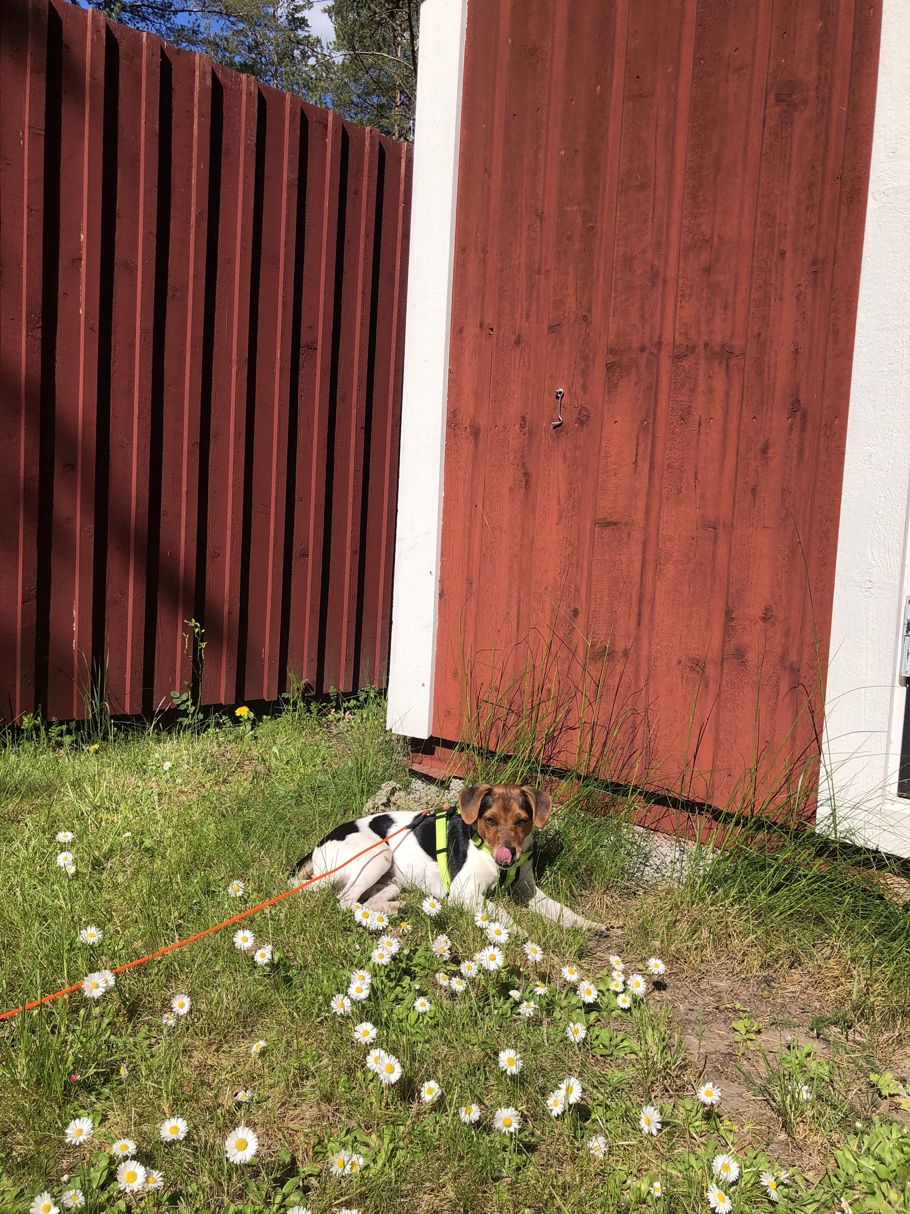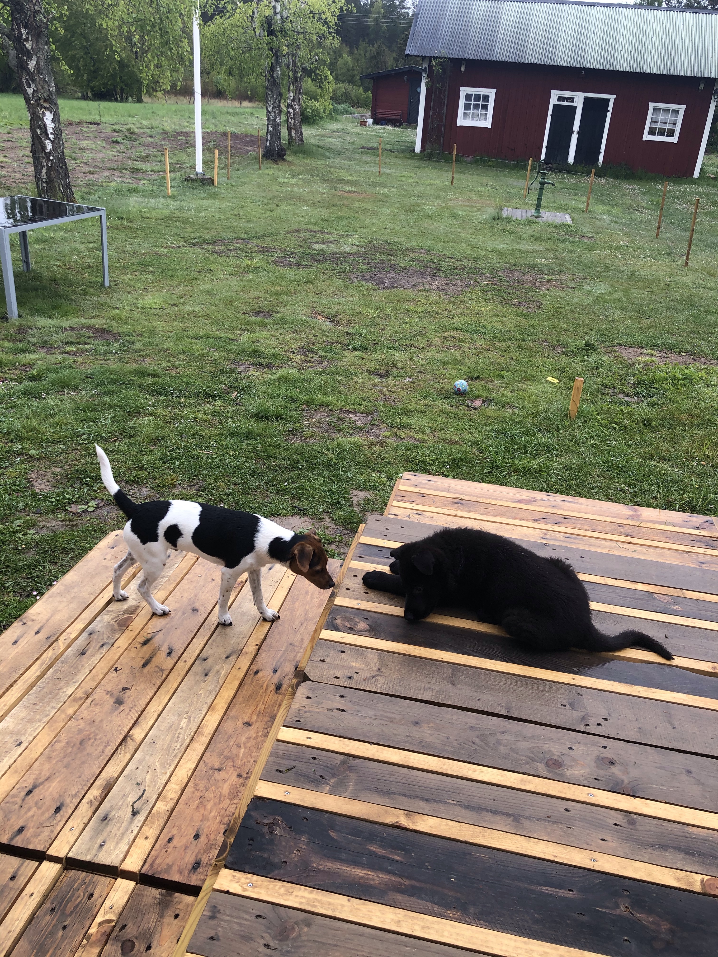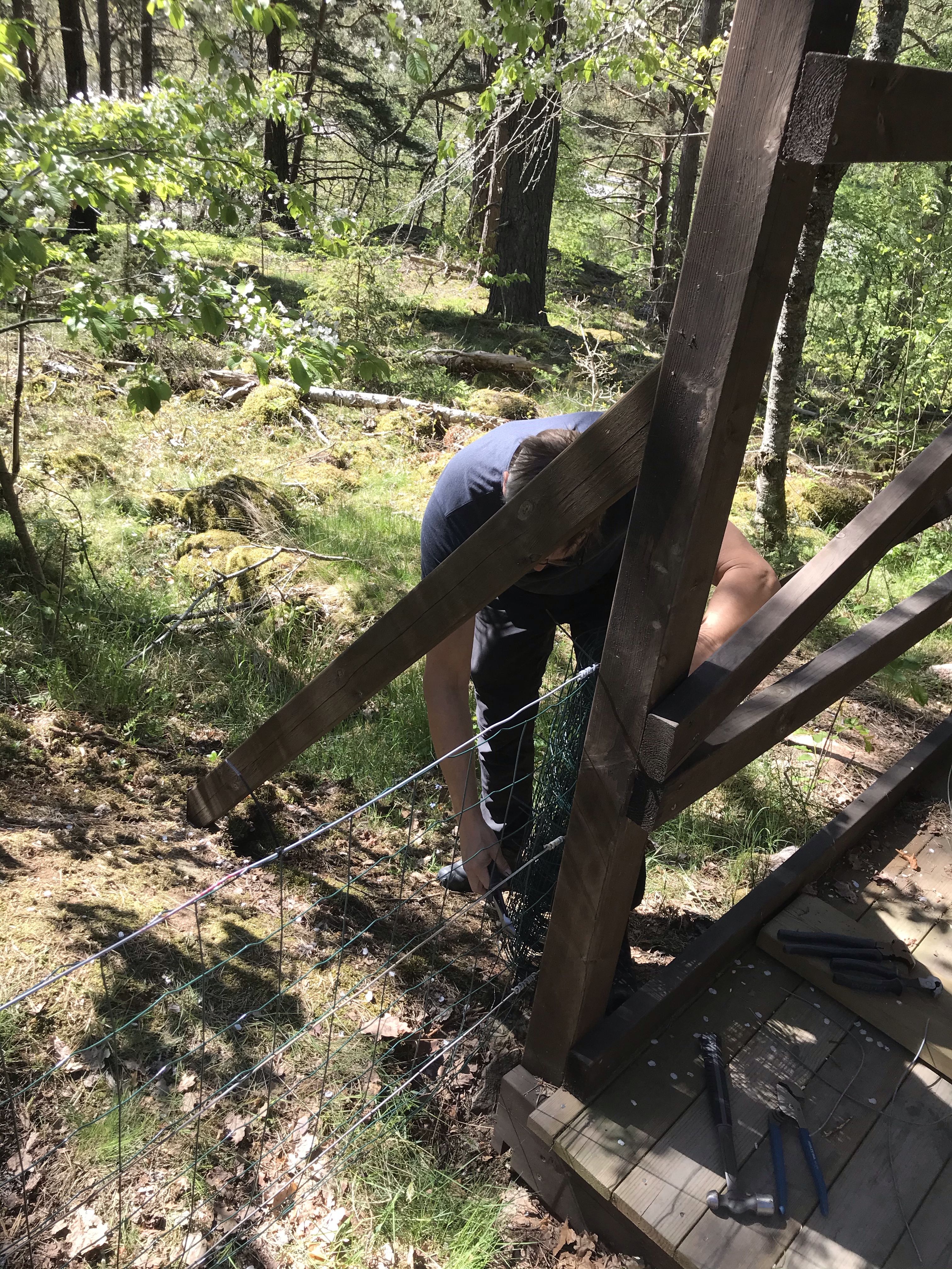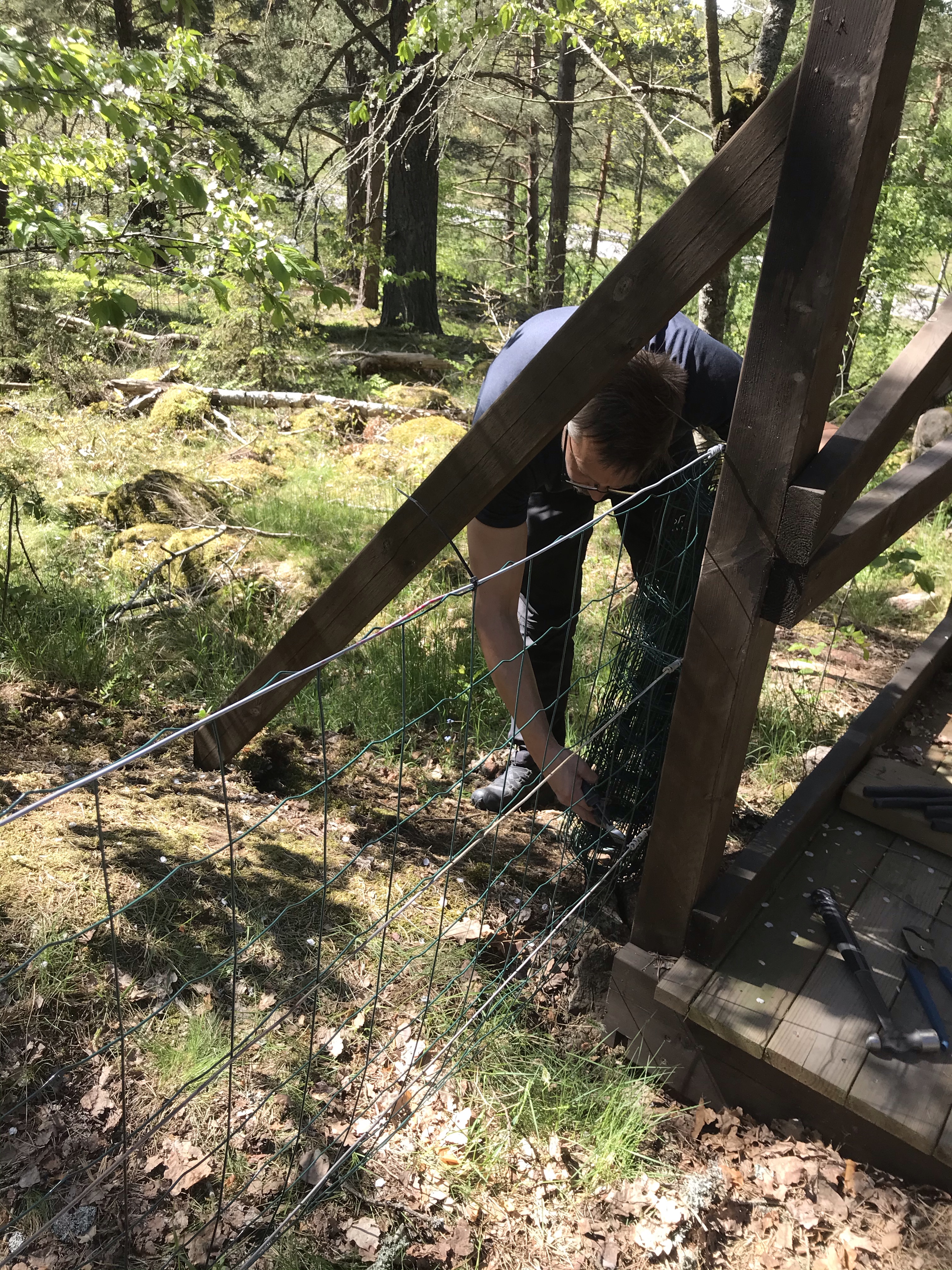 Helgens projekt var annars att sätta upp ett staket runt tomten så Hugo kan springa fritt. Vi hann faktiskt i princip klart! Bara några kompletterande delar kvar som att sätta ner några tältpinnar mot mark och på ställen där det blev glipor mot maken får vi skarva med en bit till. Nu var Hugo ändå duktig på att stanna på tomten, det var bara vid ett tillfälle som Melker, grannhusen, lockade lite mer än matte och husse 😊