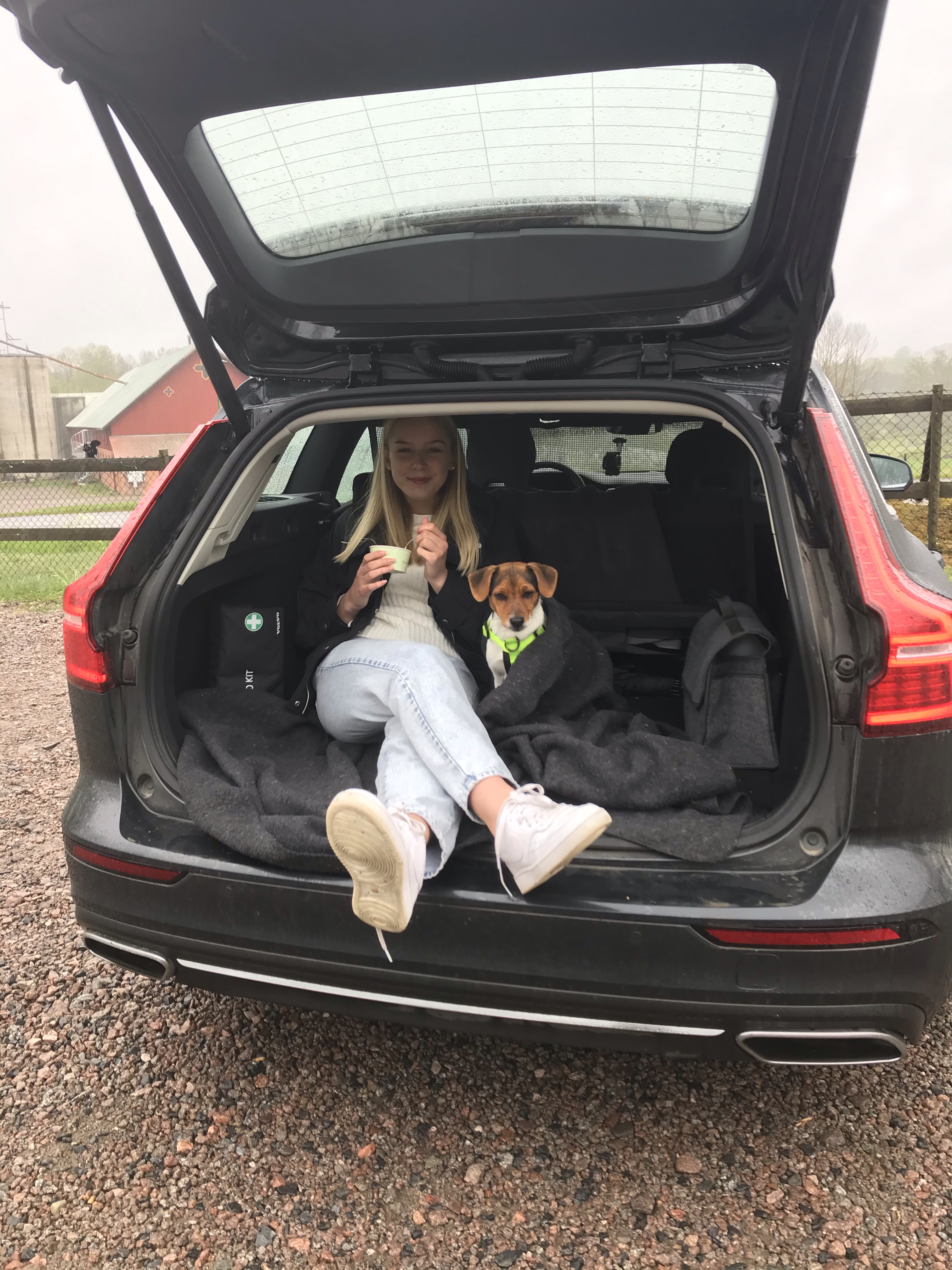 Efter två dagars härlig sommarsol blev det två dagar inte lika härligt sommarregniga dagar😕. Men det stoppade inte oss från att åka till Stafsäters Gårdsglass och äta glass i regnet. Lite väl kallt var det så Hugo och Lina satte sig i bagageluckan med filt och allt❤️