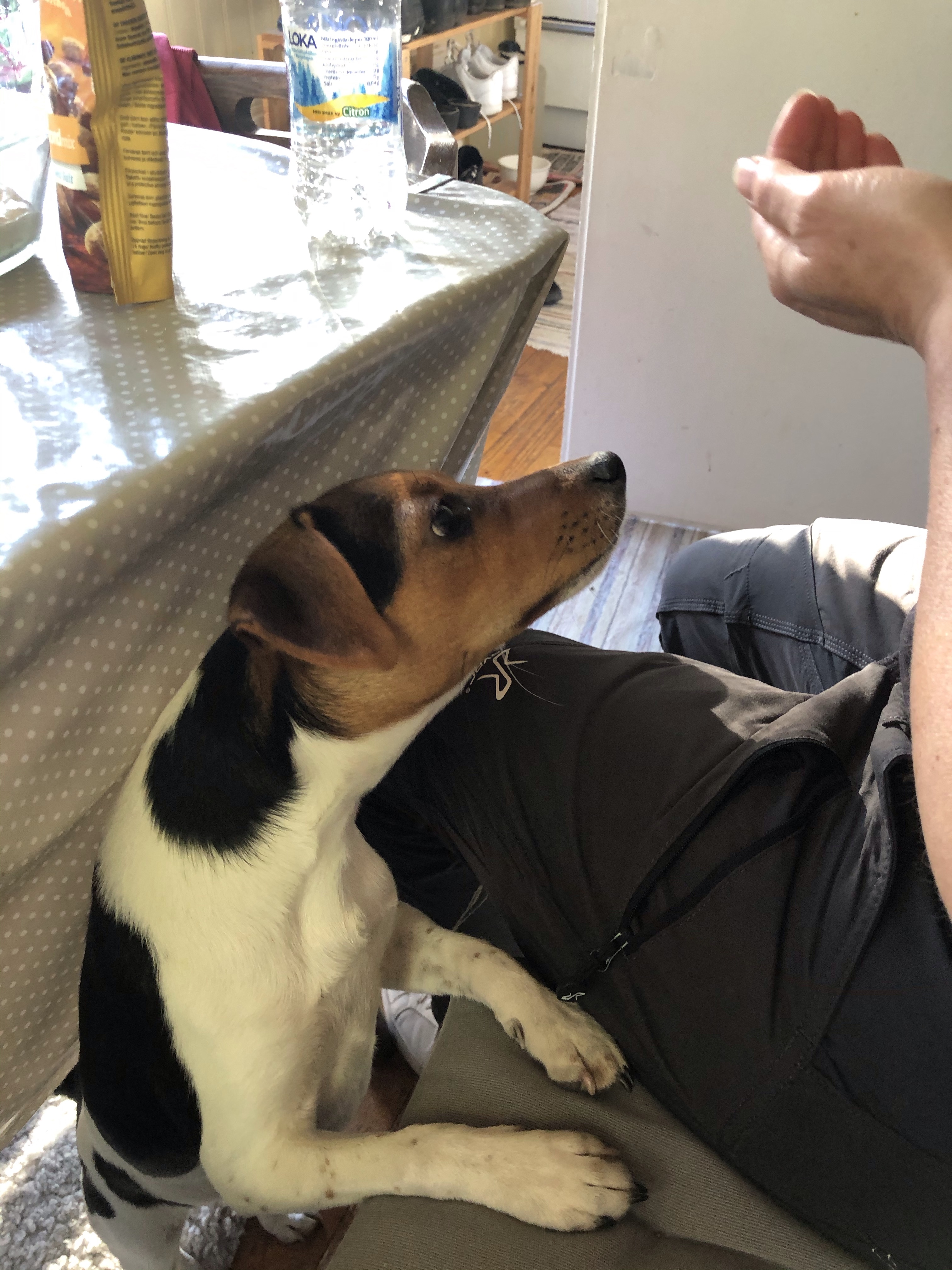 Det är ju inte så att han blev bortskämd på landet men det är klart att han ska få vara med när vi sitter vid bordet😚