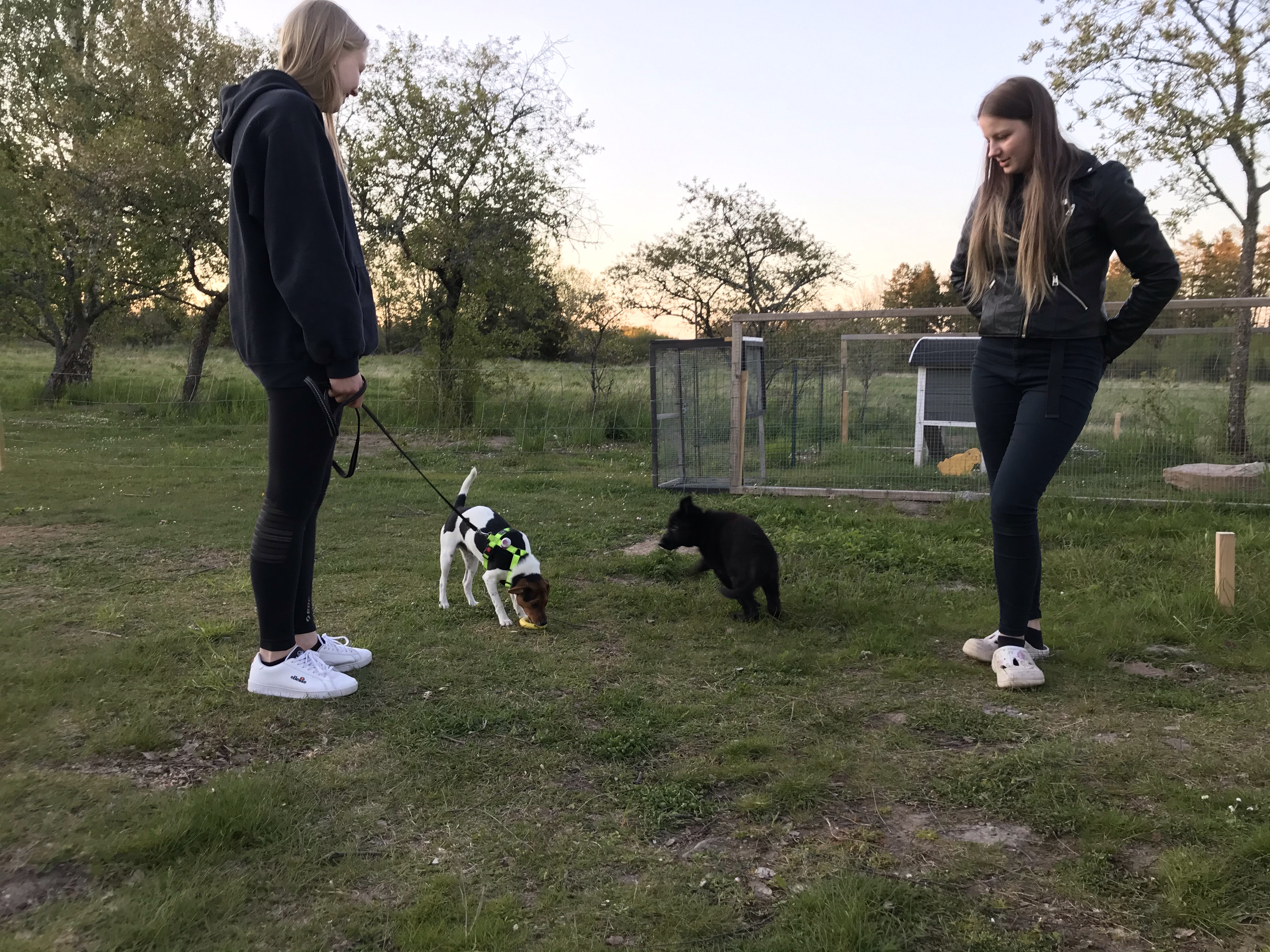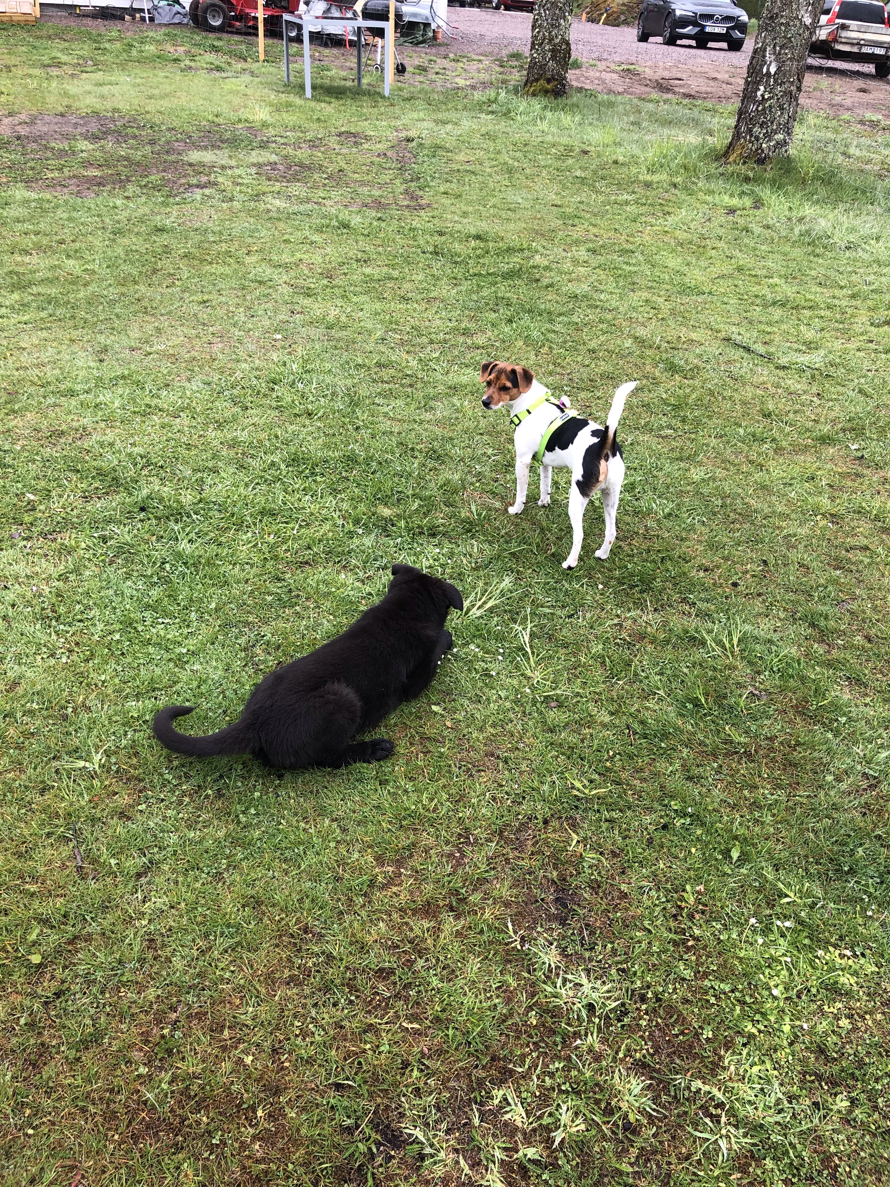 Lite bus i trädgården. Det gick riktigt bra men Hugo var lite för ivrig att få igång och busa med Luci som inte hade så lätt att hänga efter med sina lite för stora valptassar😊 Hugo for runt som om det var en kapplöpningsbana medan Luci stod kvar i mitten och försökte hänga med i svängarna😂 Roligt hade de och båda var trötta när vi åkte.