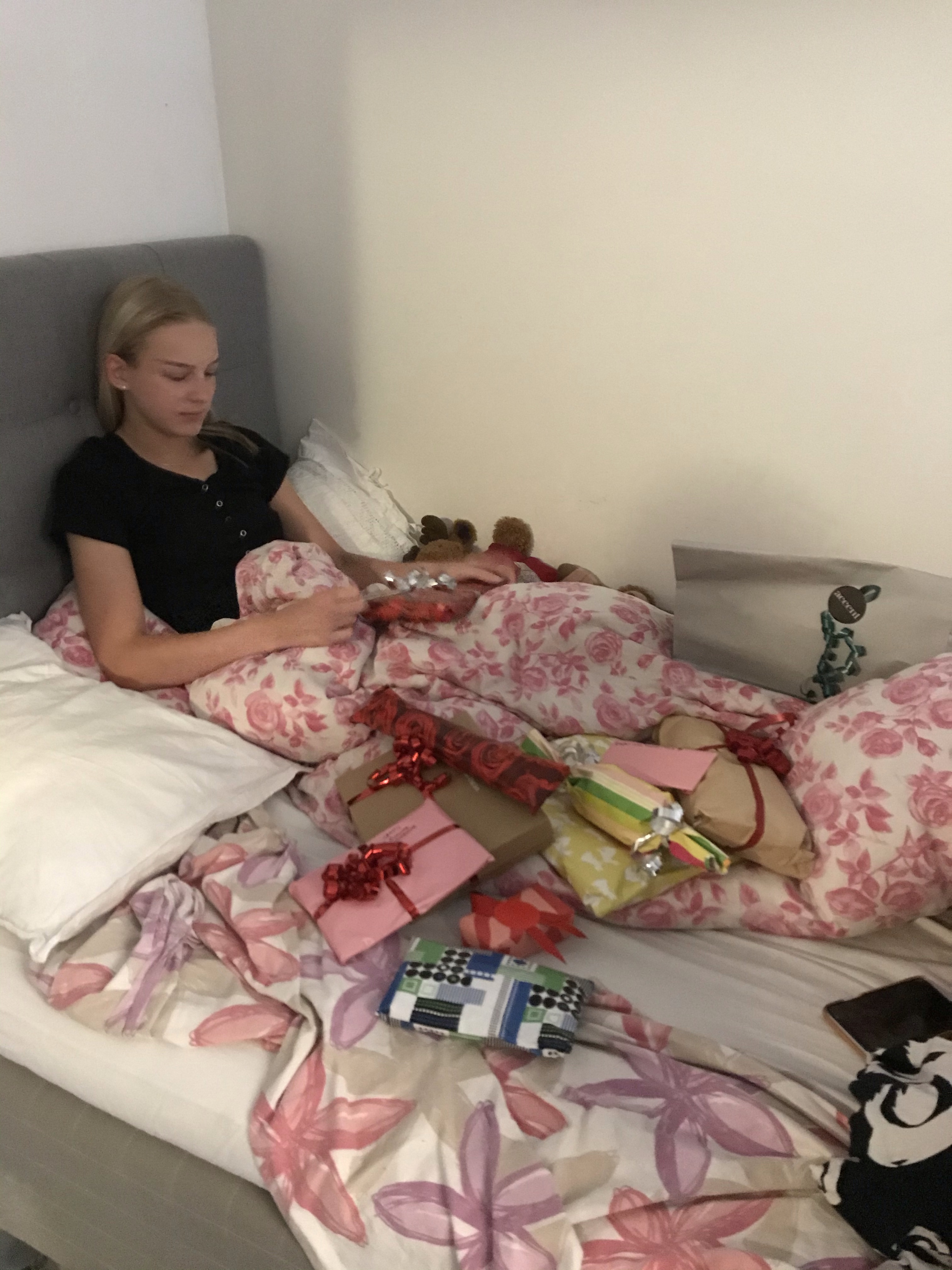 Det firade vi med lite traditionsenlig skönsång, fika och paketöppning på sängen. Snälla storasyster var upp sent på natten och bakade kladdkaka som Lina hade önskat som tårta. Lina hade sovit lite dåligt på natten, det är ju så spännande med födelsedagar😊, men när vi kom så sov hon påstår hon😁