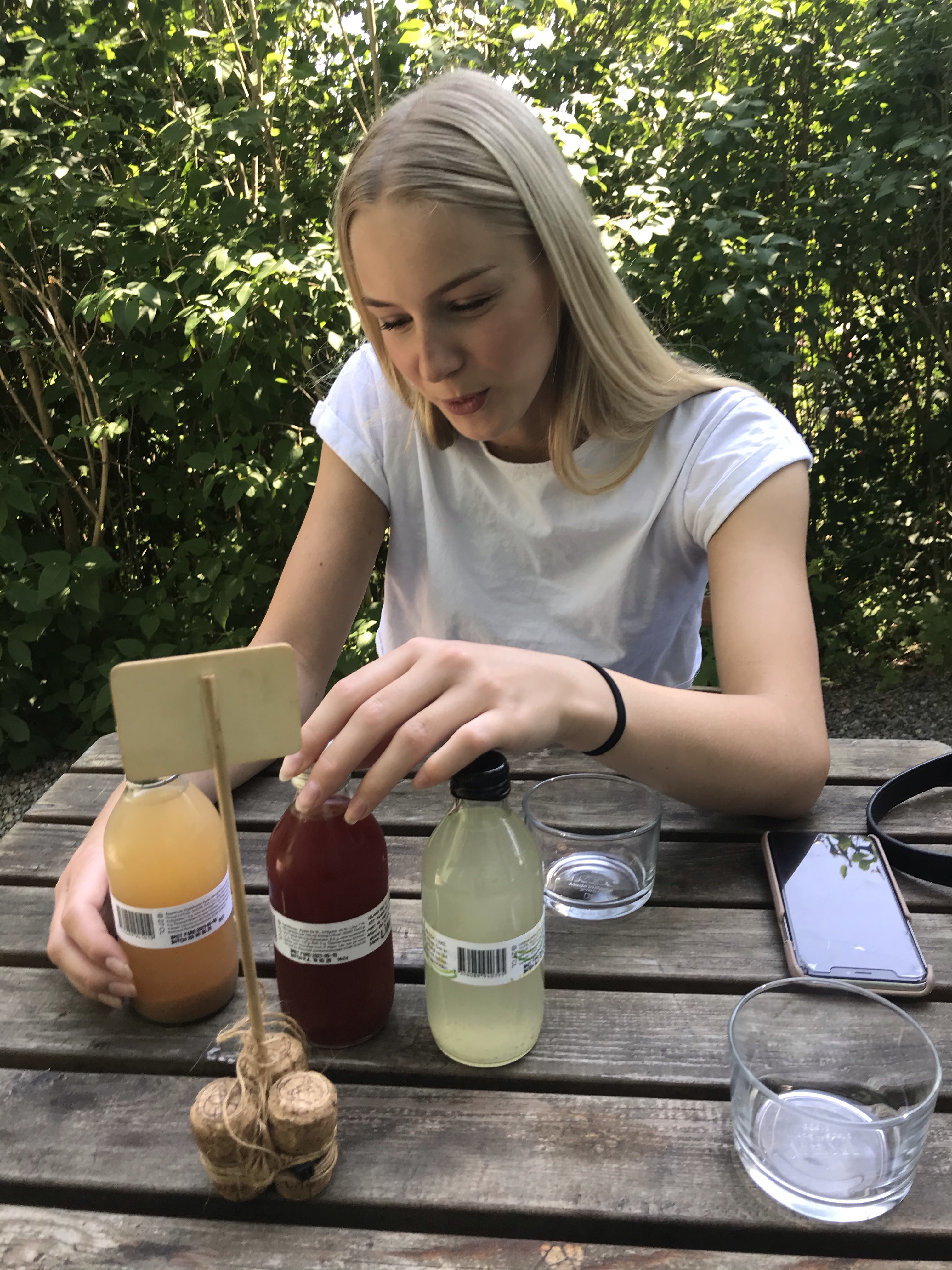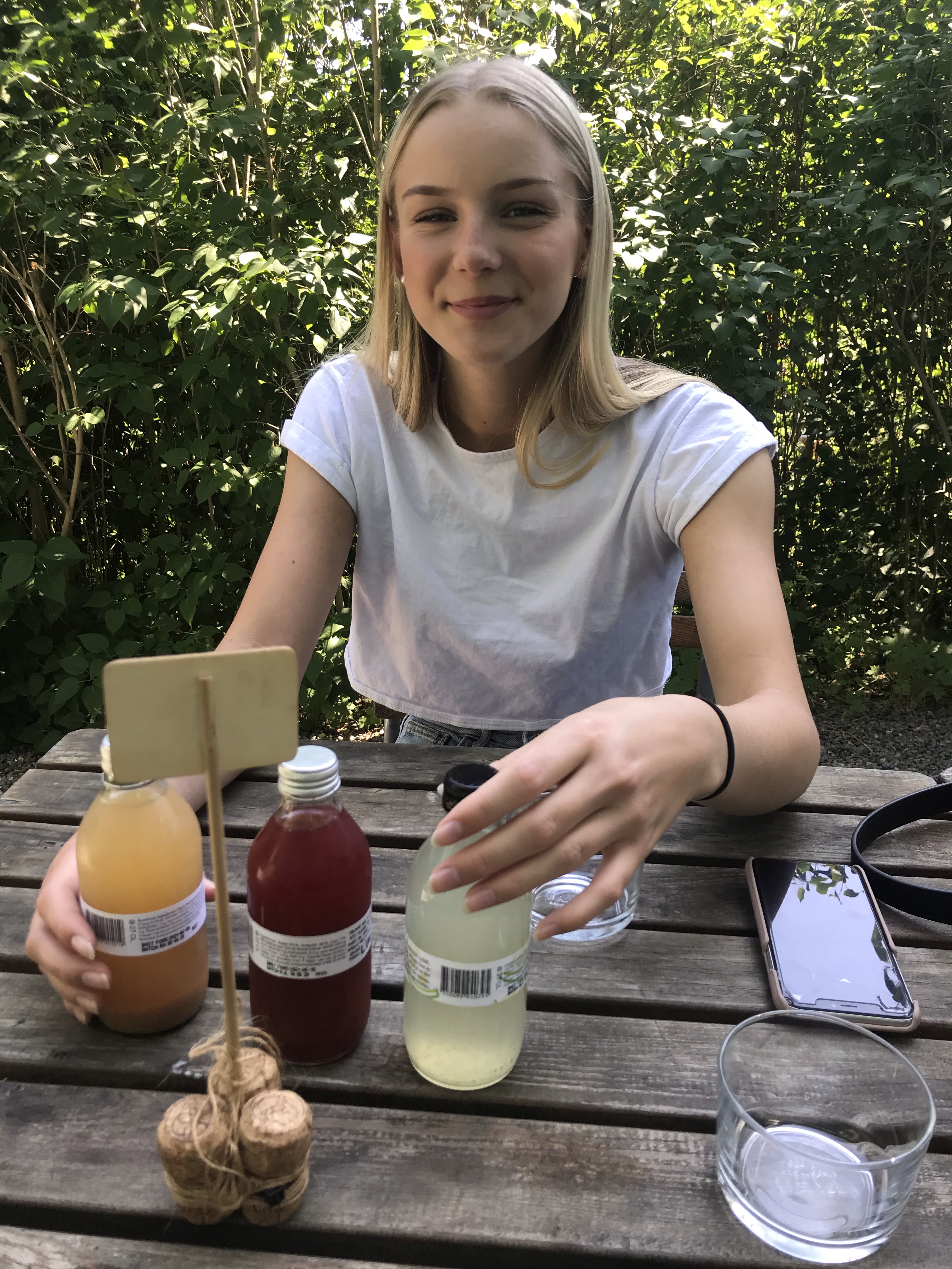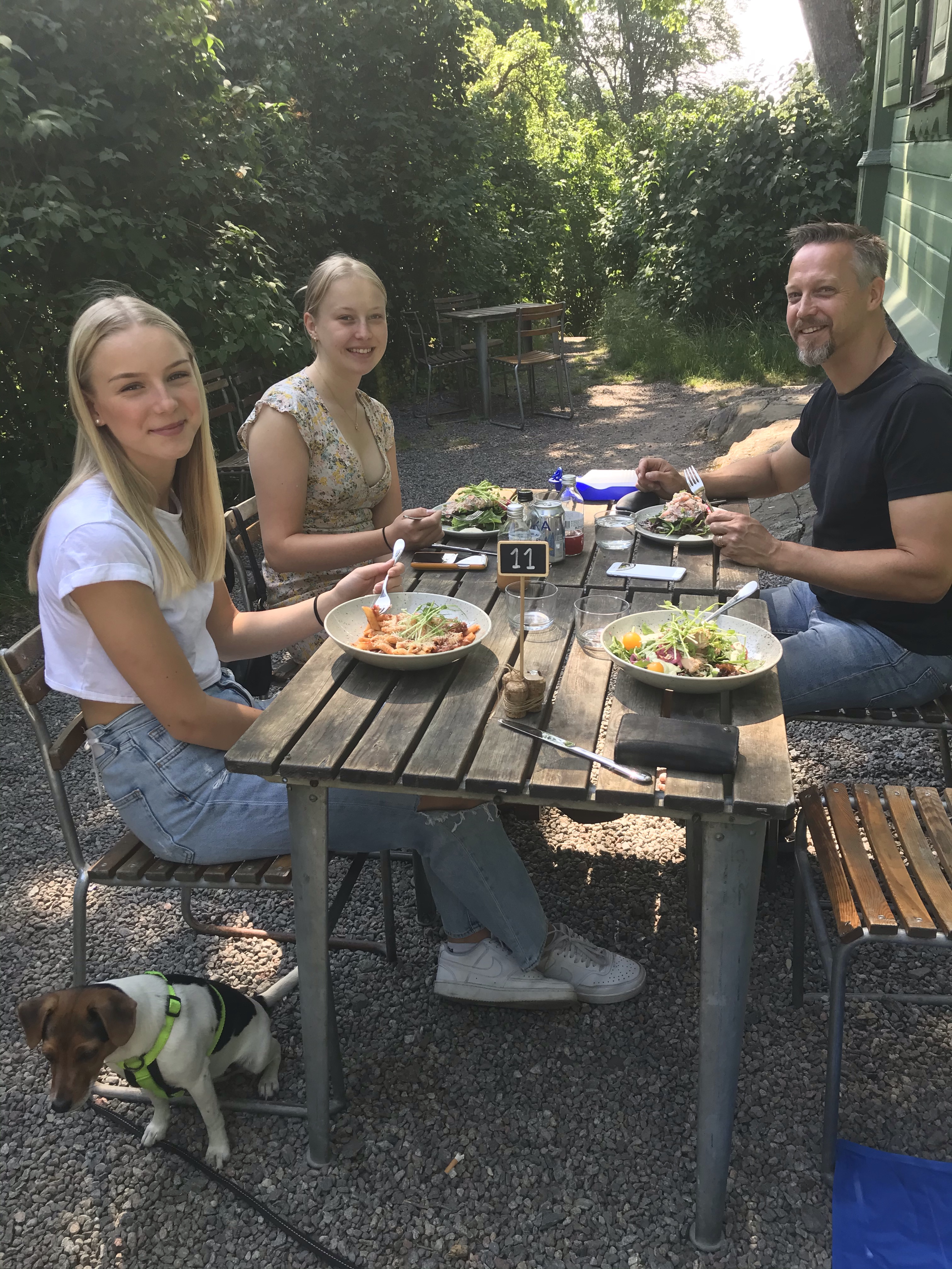 På eftermiddagen åt vi en sen lunch på Herrängens gård. Vi hade riktigt tur med både väder och plats. Så mysigt ställe, en liten oas mitt i ett bostadsområde, precis nere vid Långsjön. När vi kom hem gjorde hon sig iordning för att fira vidare med sina kompisar.