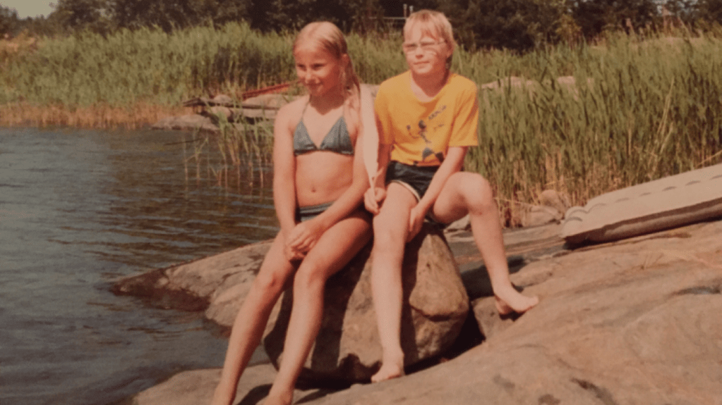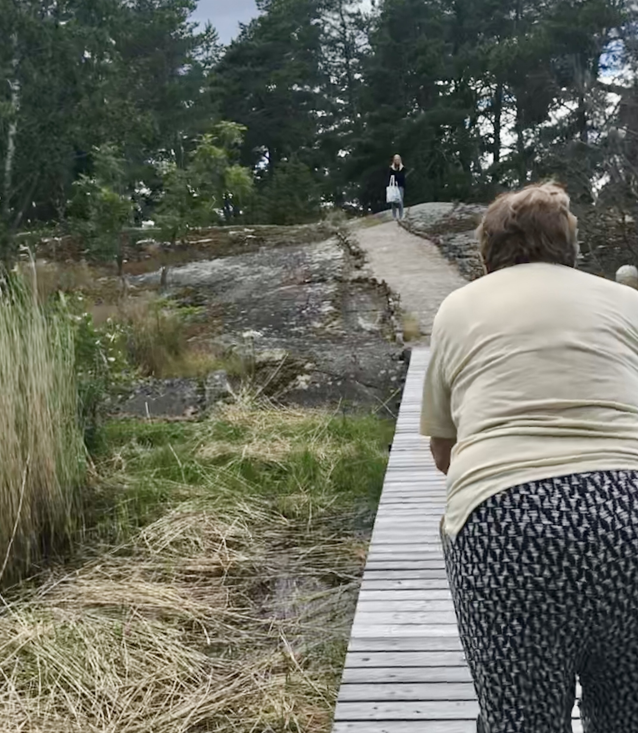 Jag känner igen varenda skreva och mönster ute på det här badberget! Jag kunde spendera timmar med att göra vattenbanor nerför berget. Ibland råkade en liten fisk bli fångad vid strandkanten och då fick den bo i en av vattenpölarna… tills mamma kom ut och sa till mig att det var synd om fisken och att jag fick släppa tillbaka den i vattnet på en gång! Så här i vuxen ålder tycker jag också synd om dom där stackars fiskarna, förlåt🙁