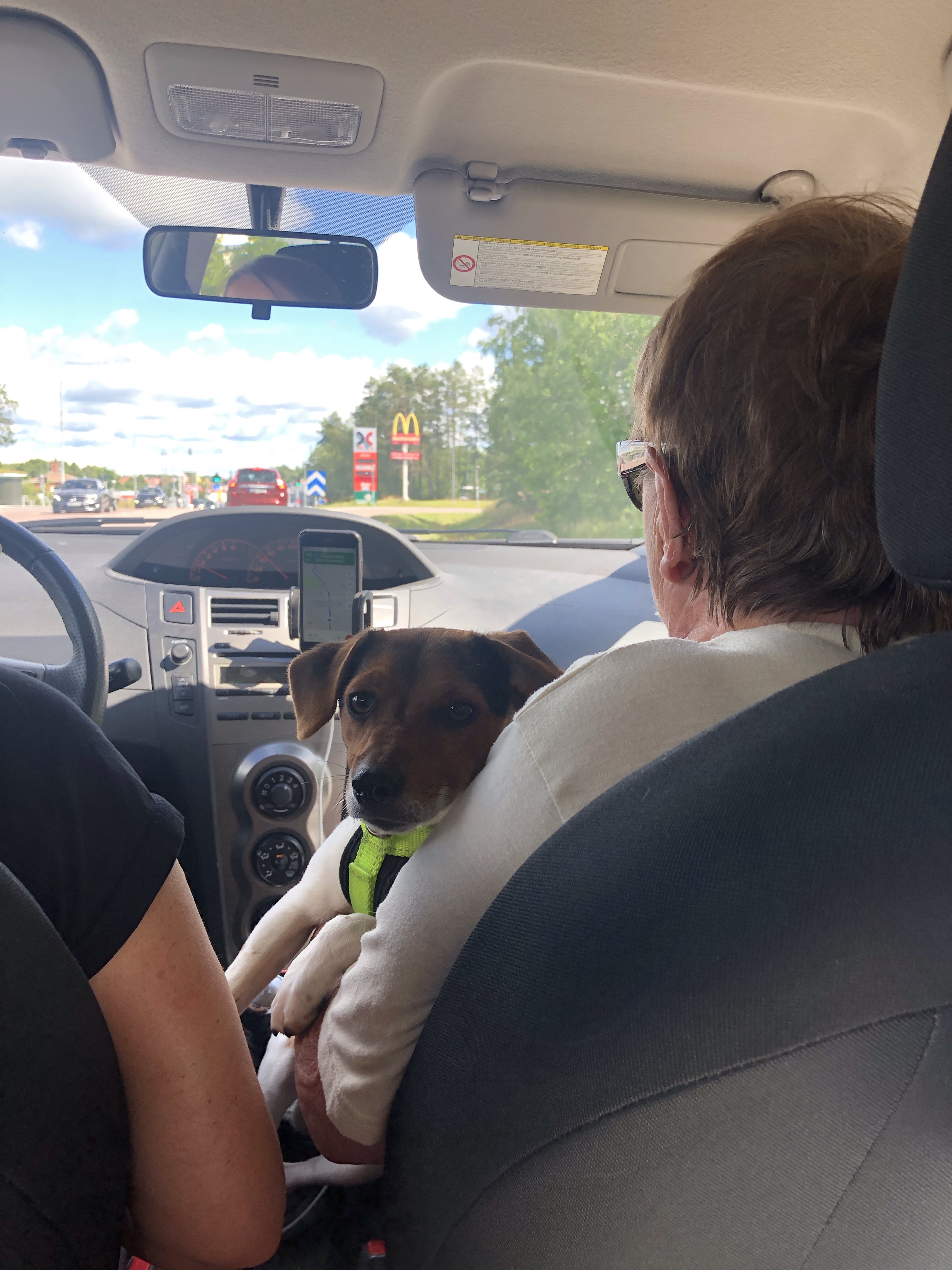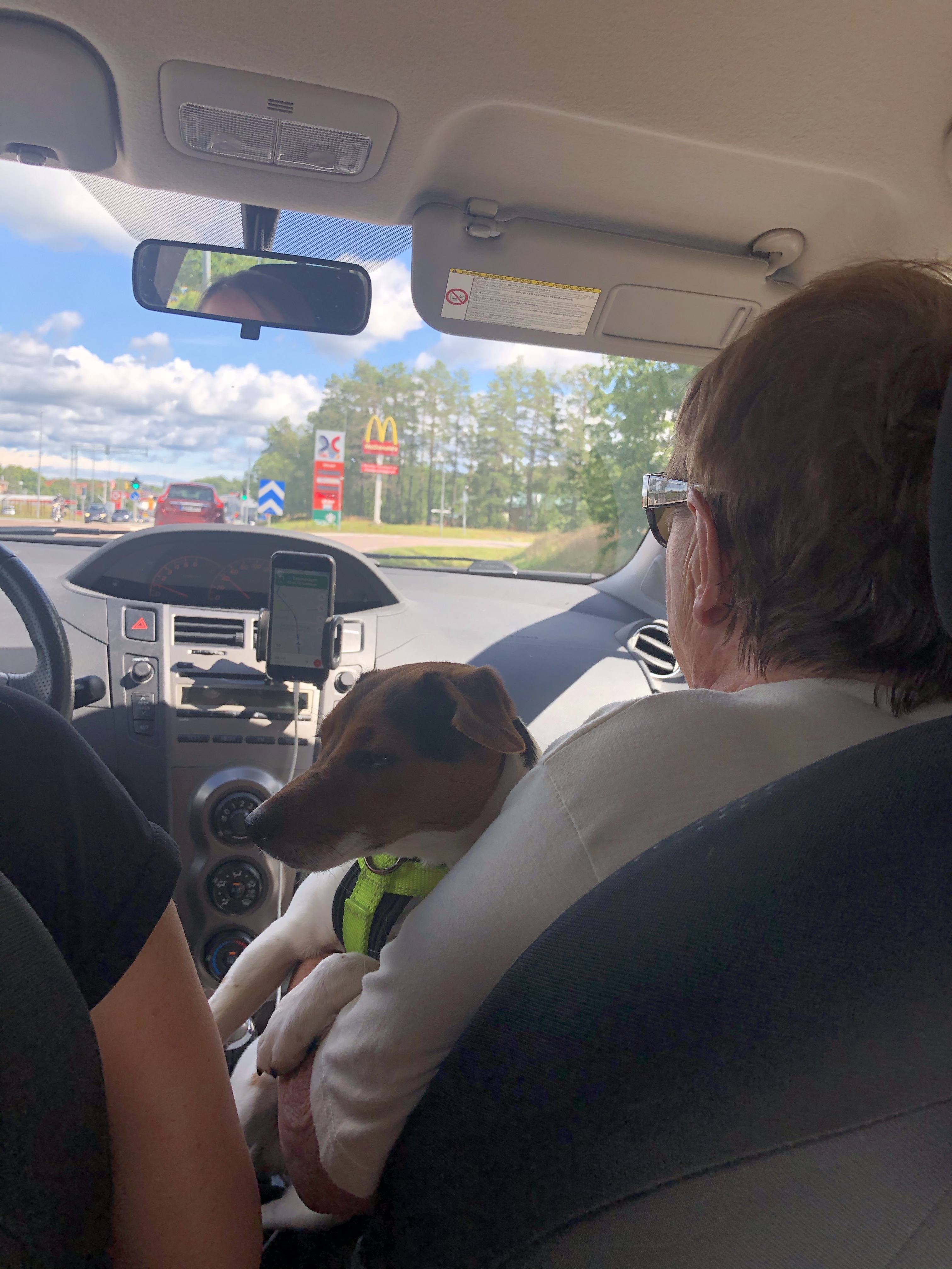 På rull mot Roslagen. Mormor fick ha Hugo i knät hela vägen. Tror hon gillar honom, och tvärtom❤️