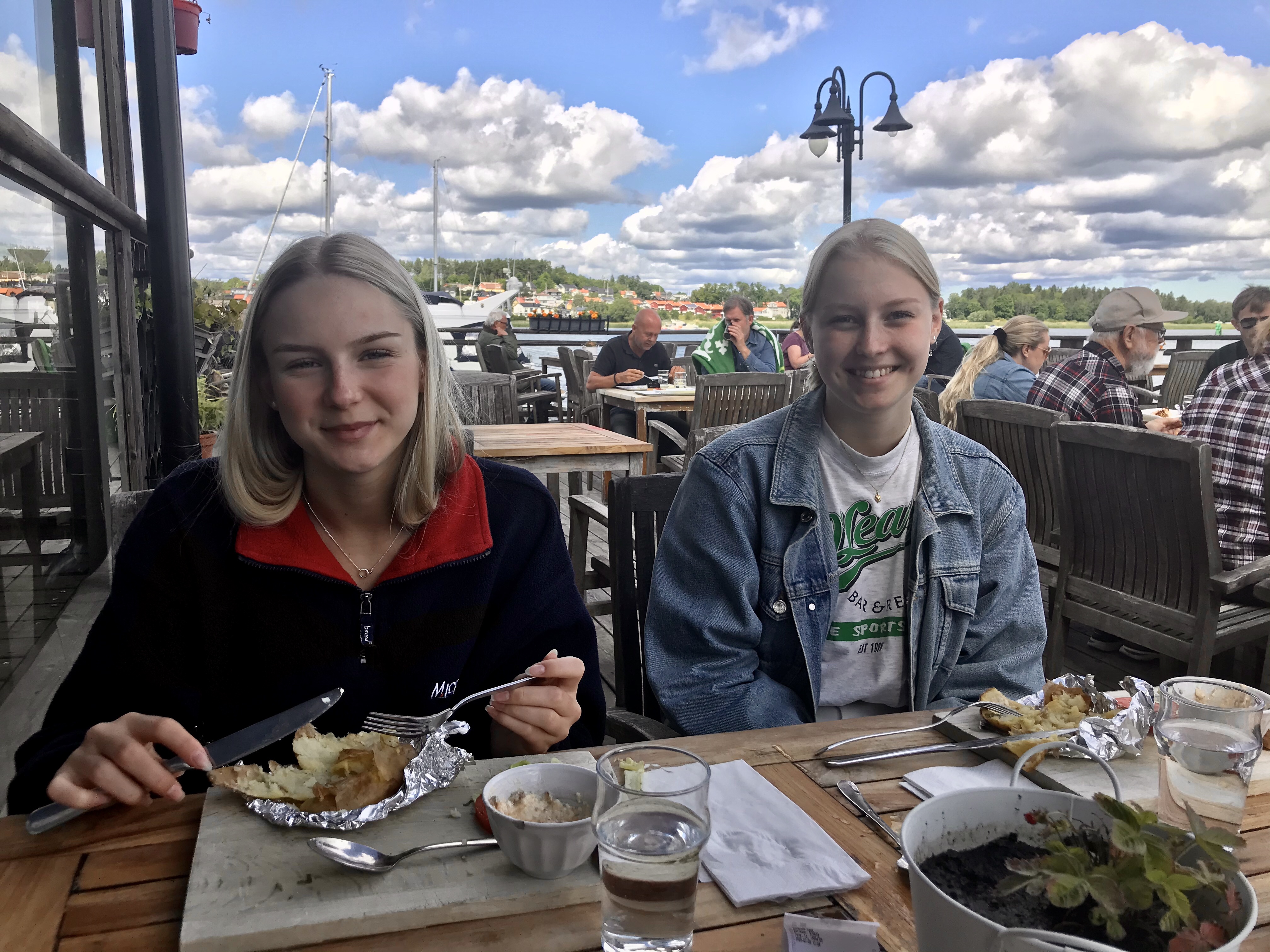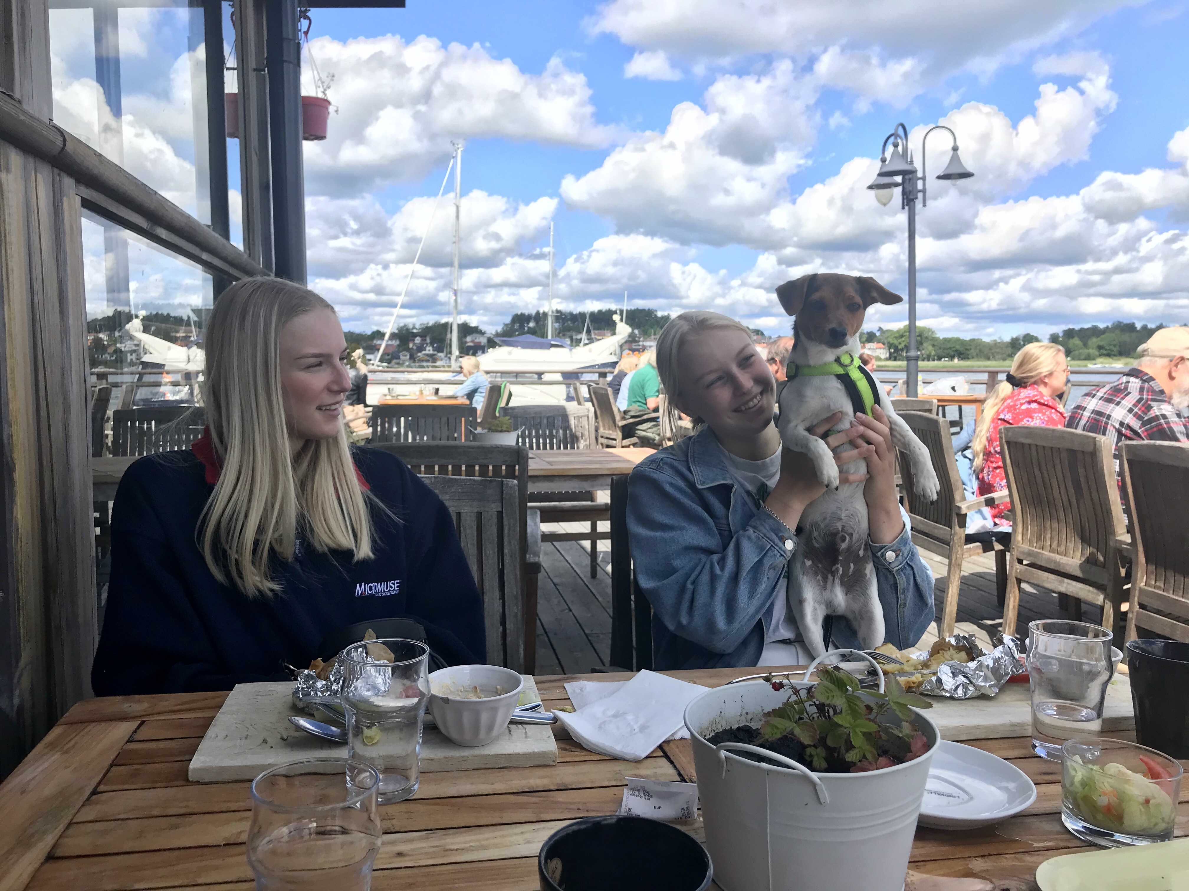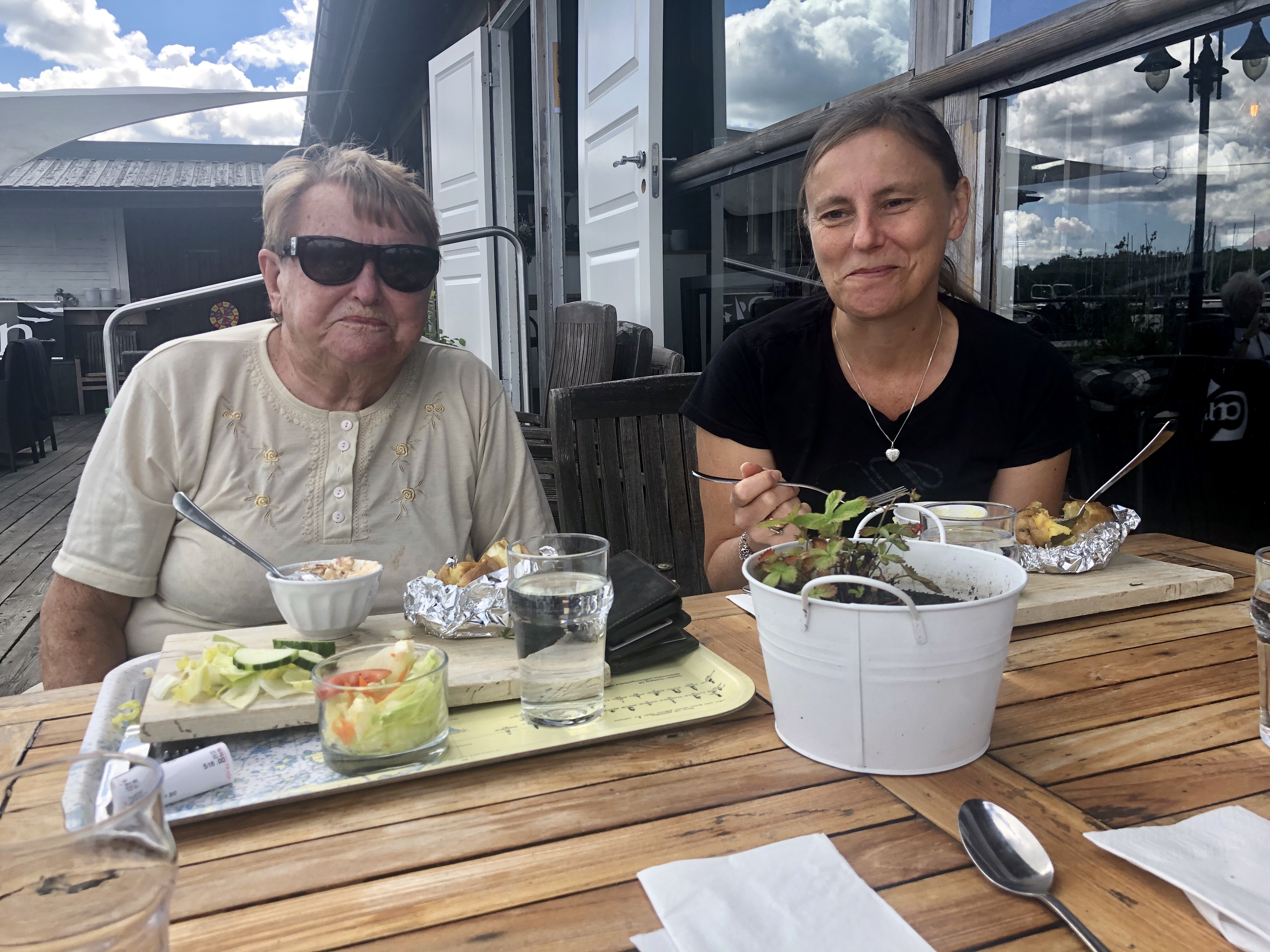 På vägen stannade vi i Norrtälje och åt lunch på Restaurang Piren. Bakad potatis blev det för oss och medhavt färskfoder till Hugo.