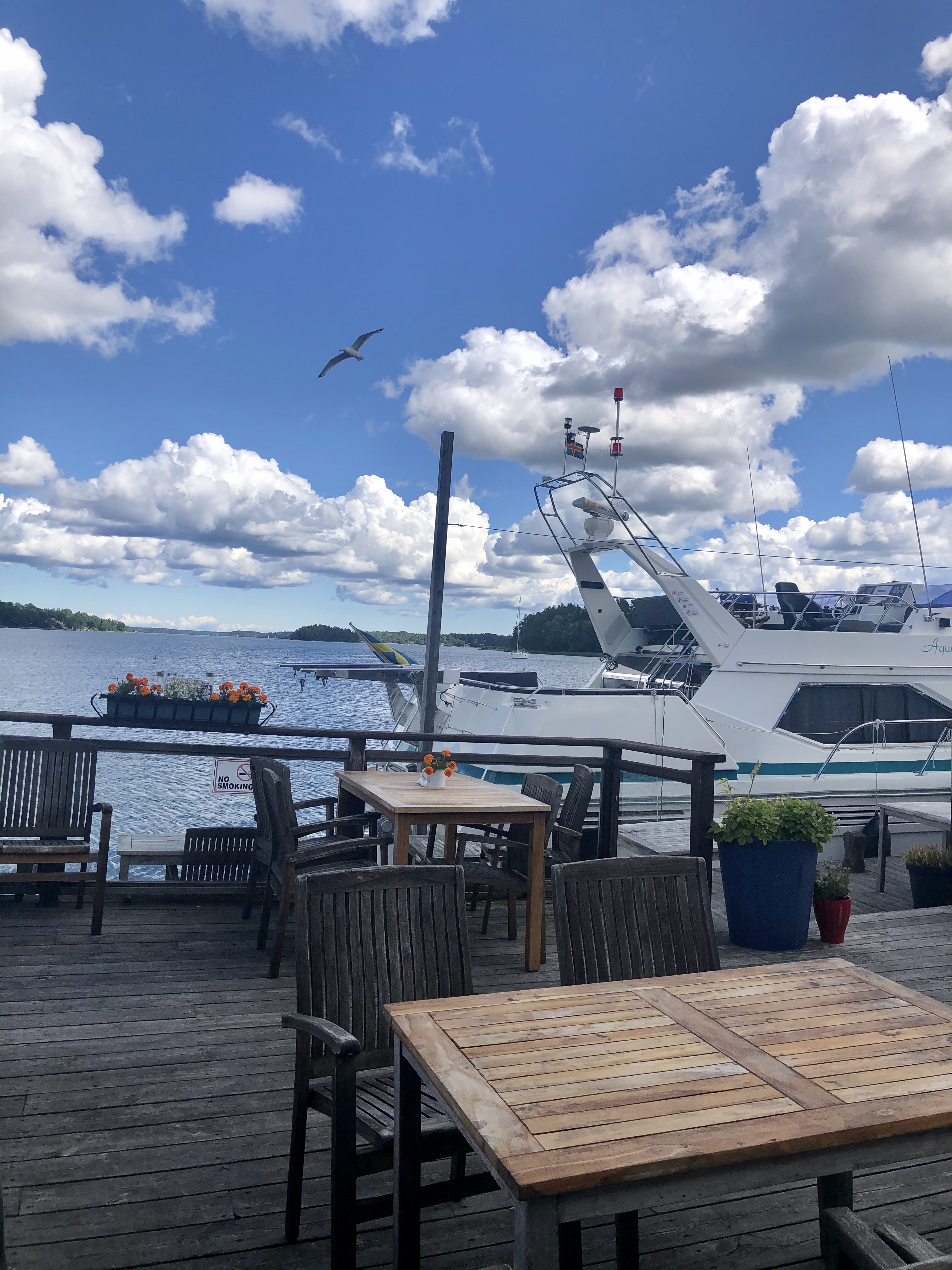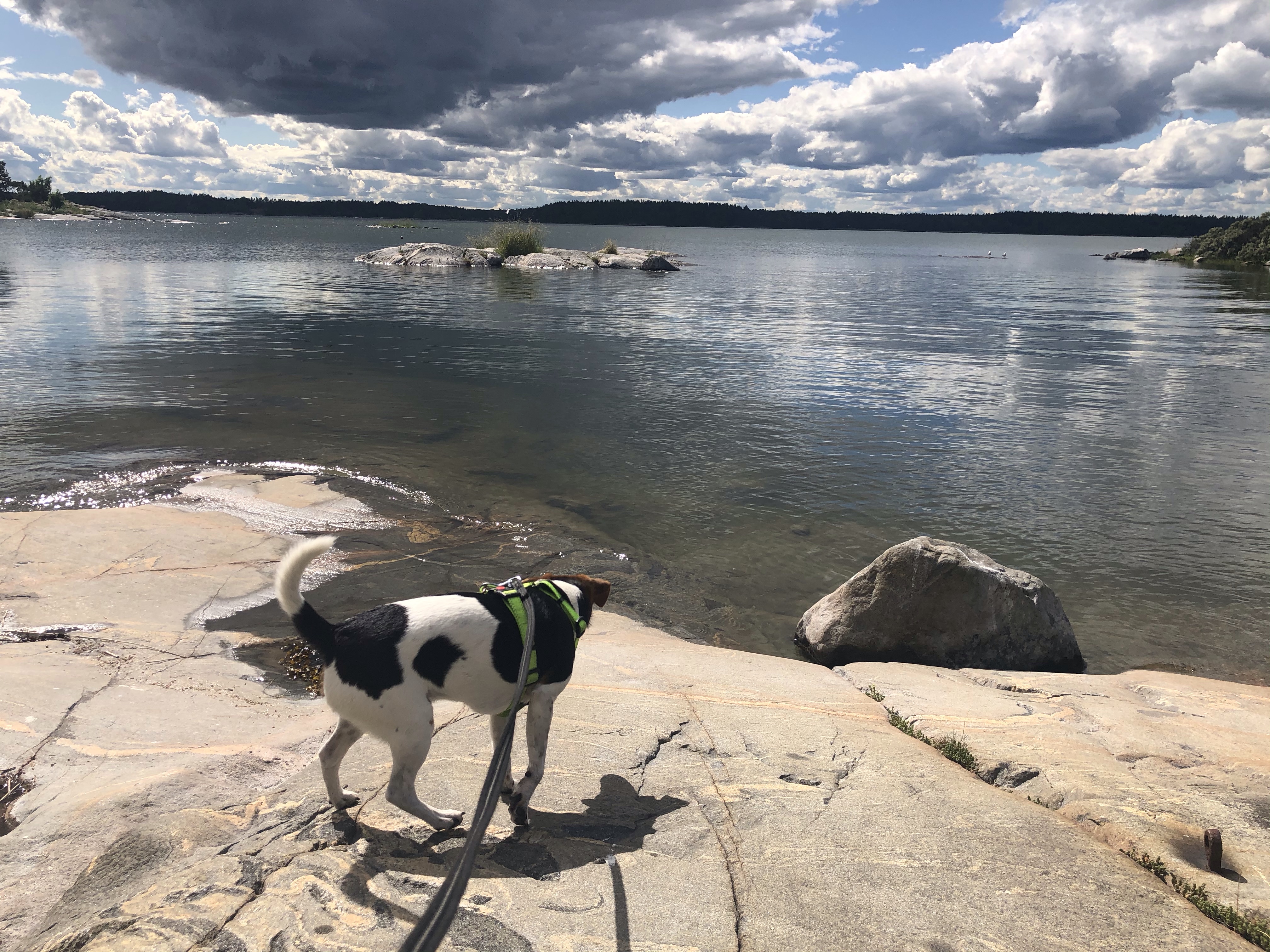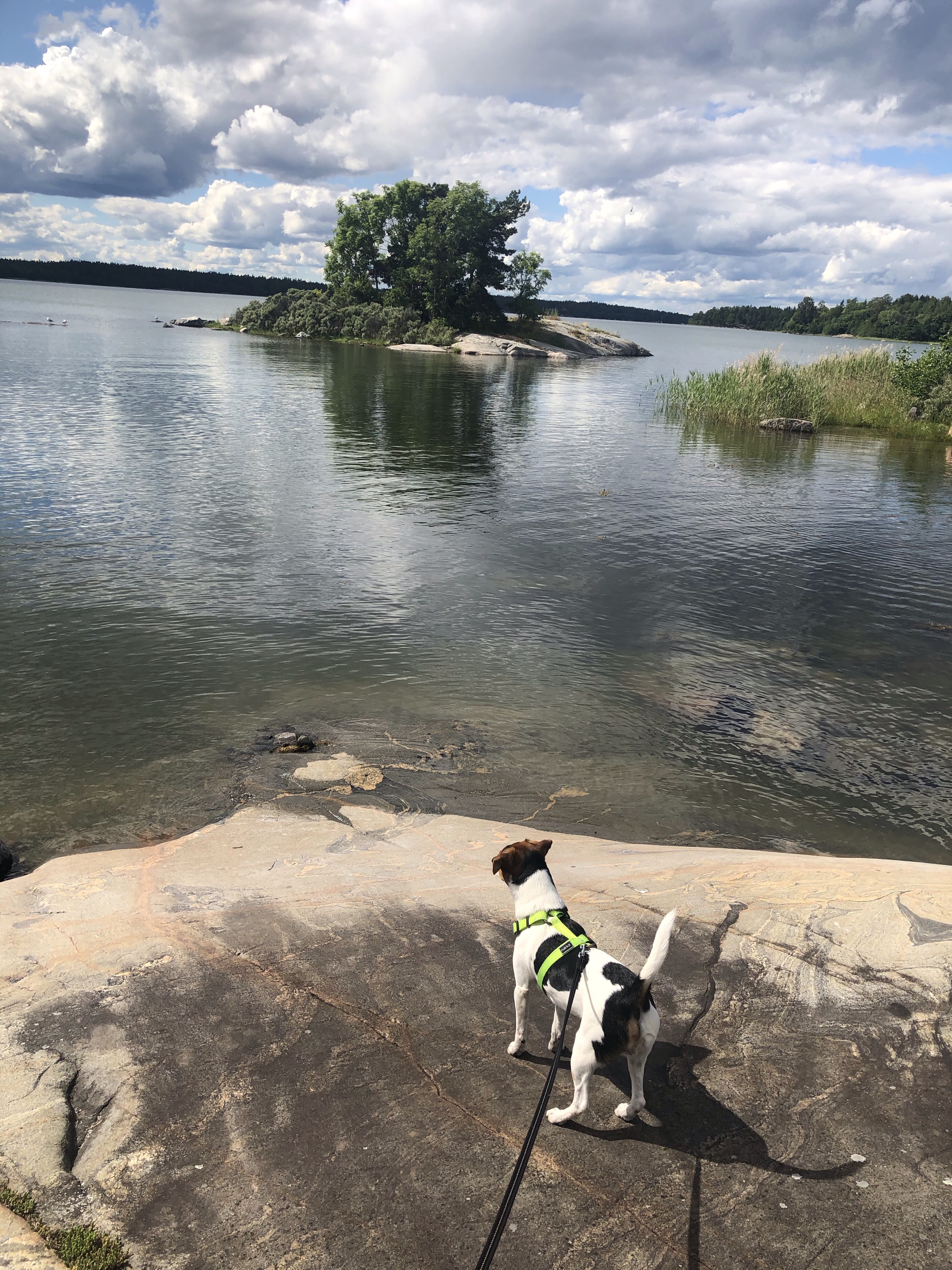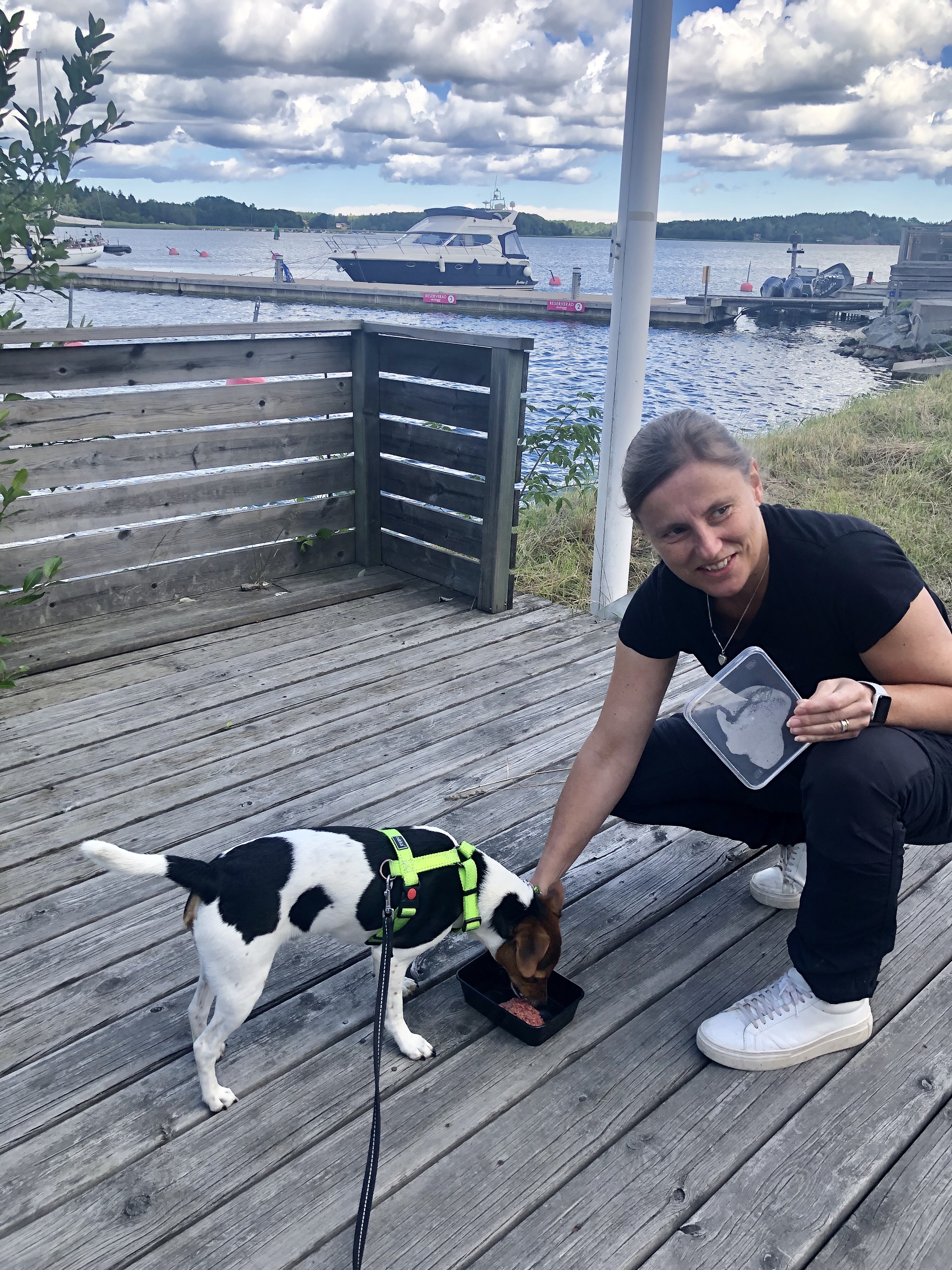 På vägen stannade vi i Norrtälje och åt lunch på Restaurang Piren. Bakad potatis blev det för oss och medhavt färskfoder till Hugo.