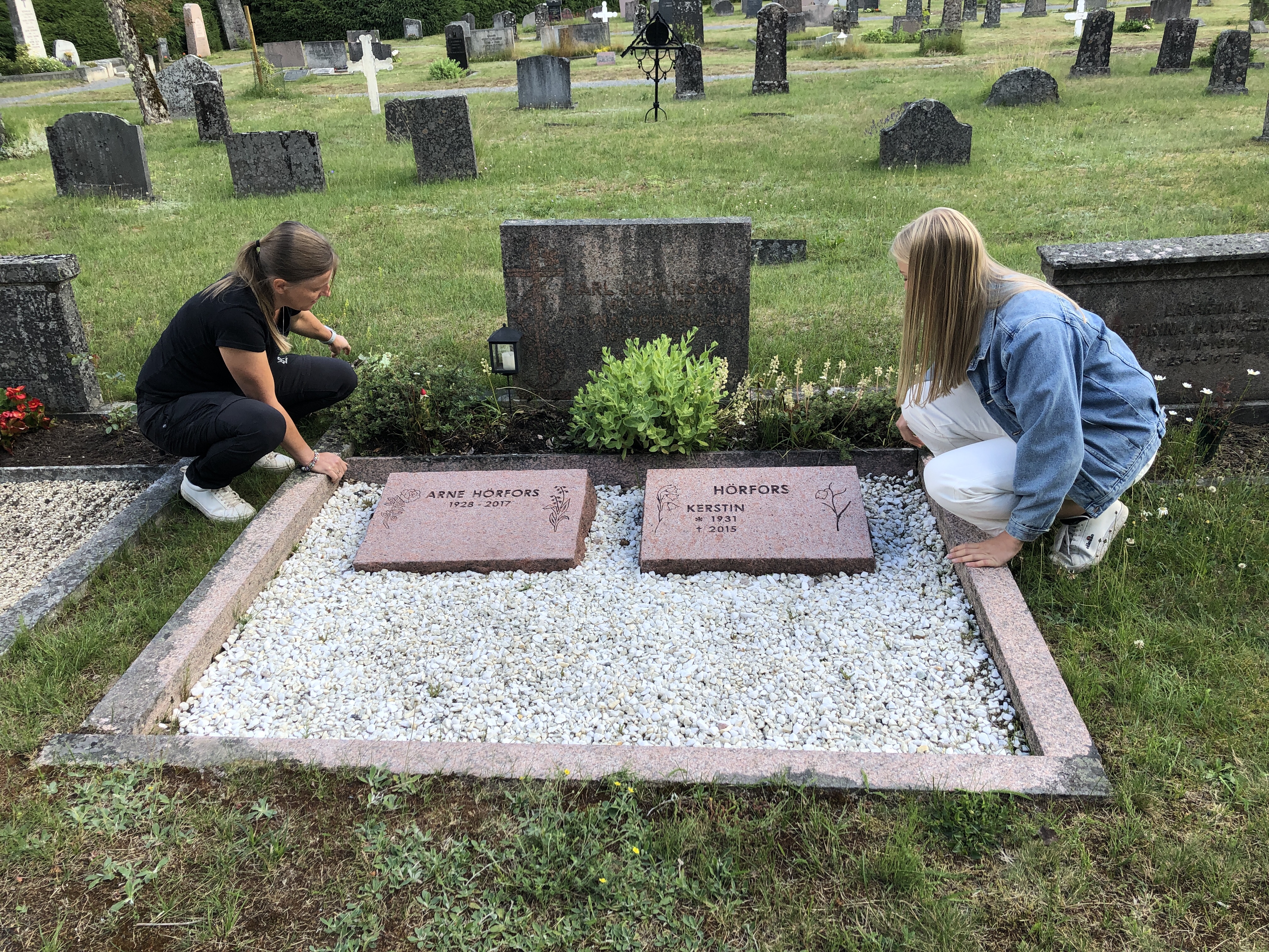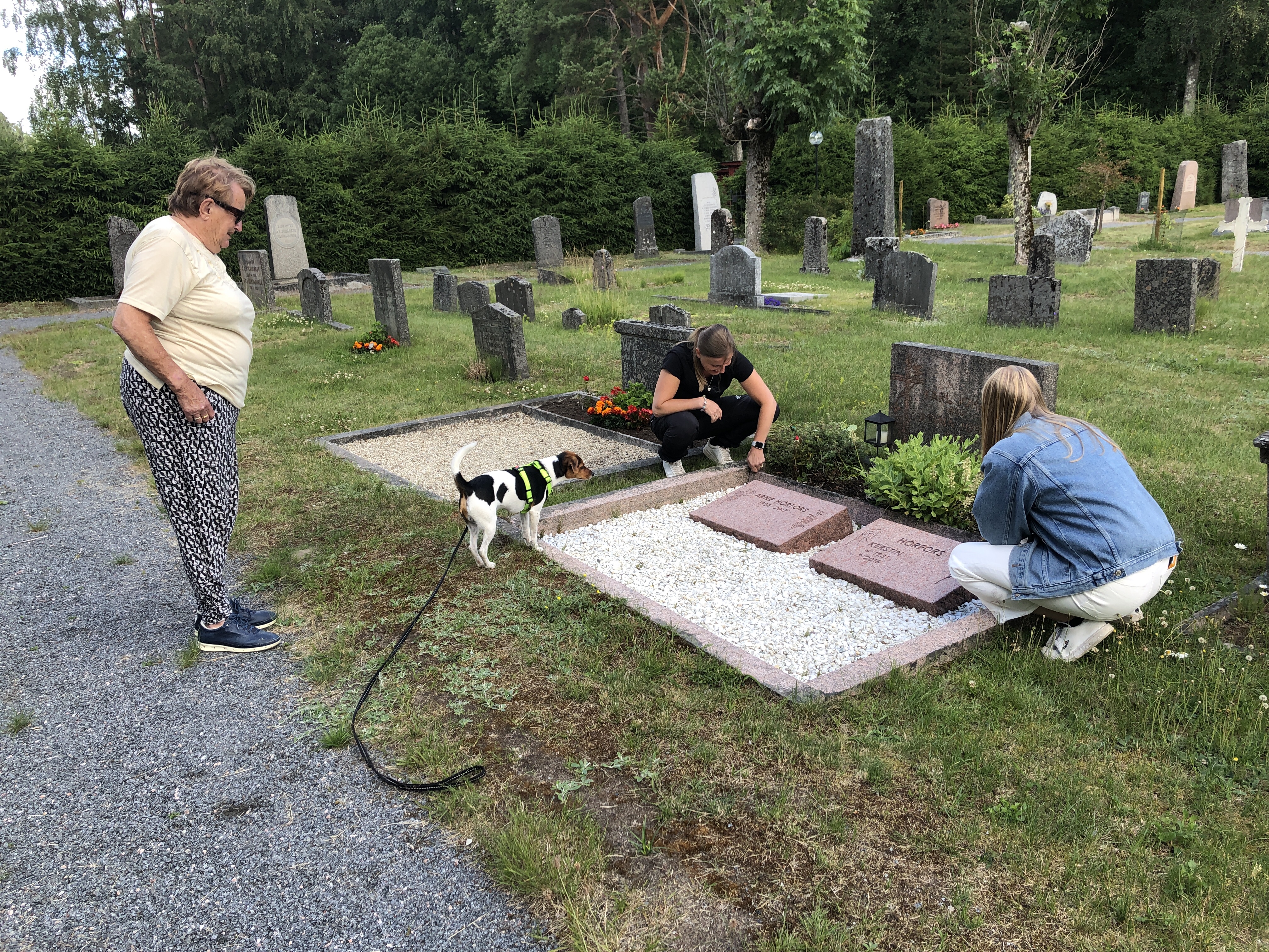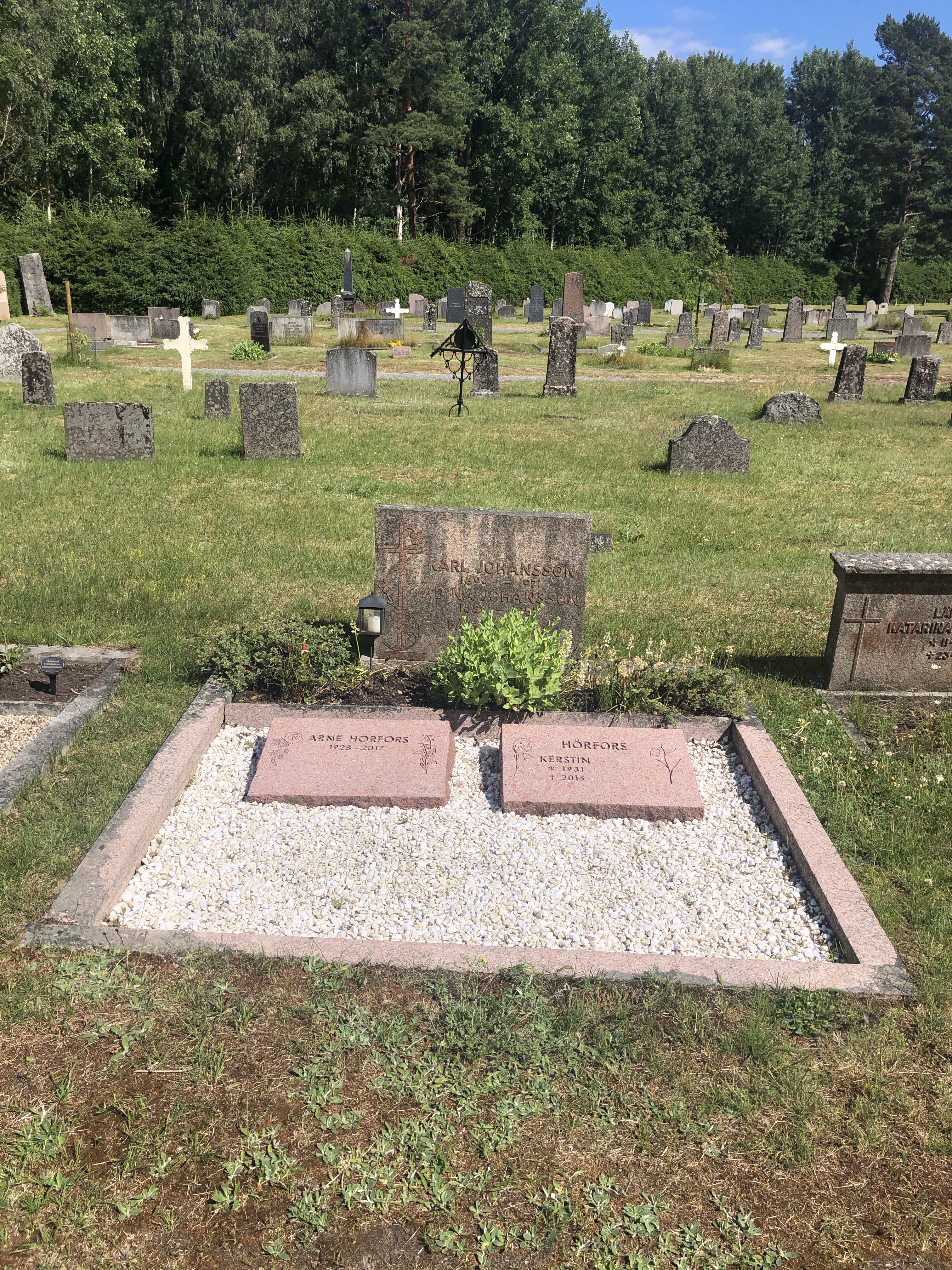 Framme vid graven. Jag är så glad att pappa fick ligga här hos sin mamma och pappa i sitt älskade Roslagen. Roslagen var hans plats på jorden. Han hör hemma här❤️ Faster Kerstin som gick bort för några år sen ligger också här. Vi tog bort de fina men vissna blommorna som Hannes var förbi med för ett tag sen och rensade bort lite ogräs. Pappas grav var så fin❤️ Jag saknar dig så mycket pappa! Jag saknar din lugna trygga röst och din kramgoa famn❤️